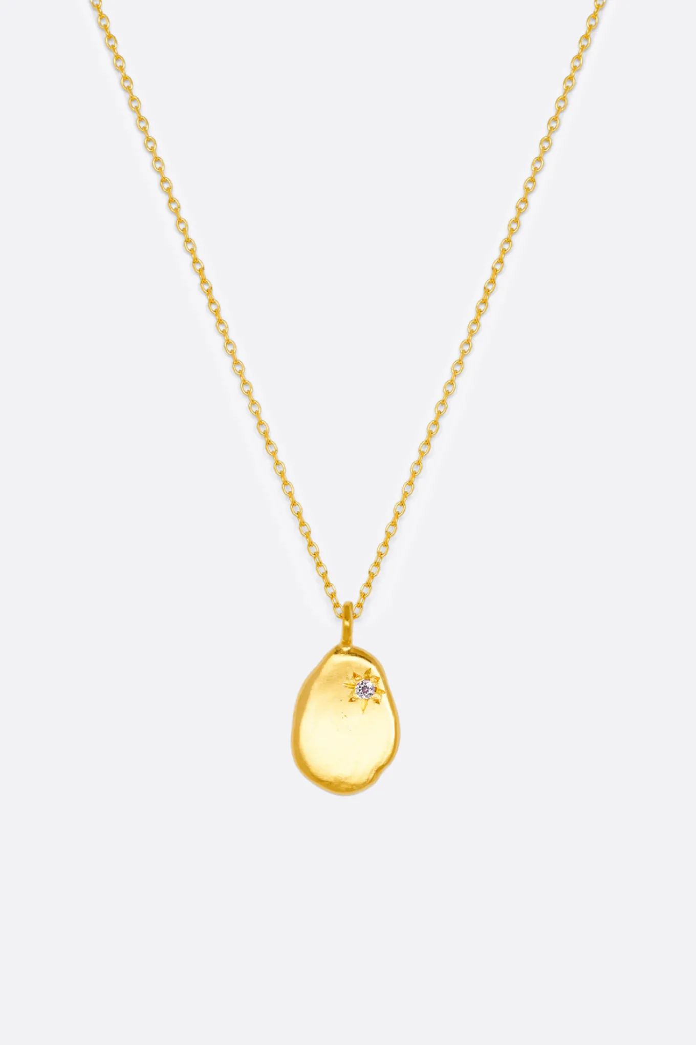 Pépite avec un éclat précieux, le collier Rosalie est fait à la main par nos bijoutières. Avec son effet brut, le collier Rosalie se décline en vermeil ou en argent. Une pierre précieuse a délicatement été serti sur la pépite doré : rubis, saphir, topaze ou émeraude. Et pour le rendre encore plus unique, la gravure sur médaille est disponible.