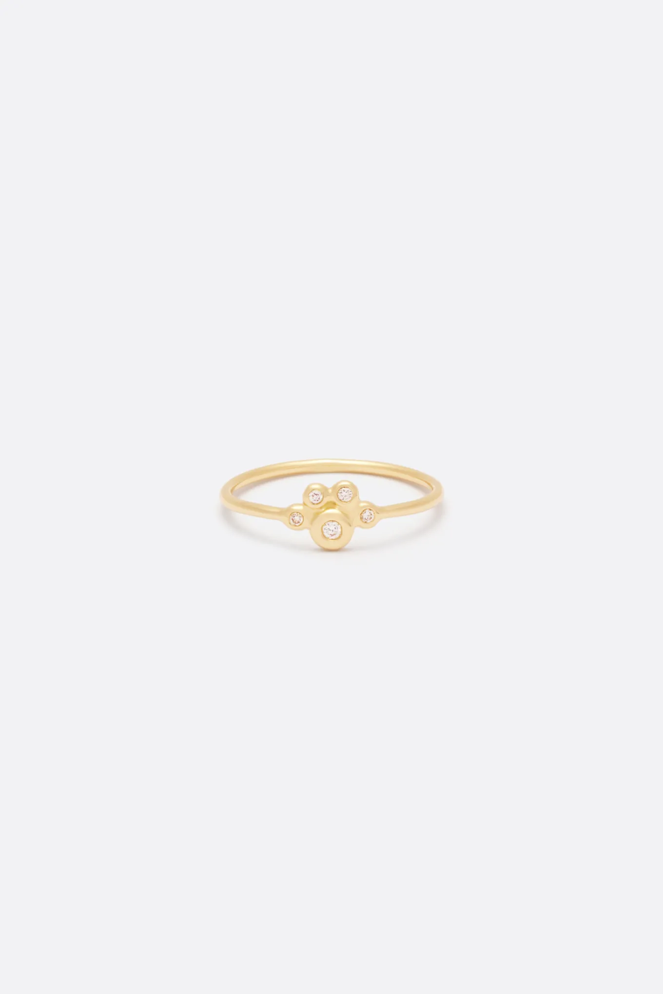 La bague Séraphine se distingue par son association de pastilles dorées, à sertir de diamants blancs selon la composition avec 1 ou 5 diamants. La bague Séraphine est en or 18 carats et se décline en or jaune, or rose ou or blanc.