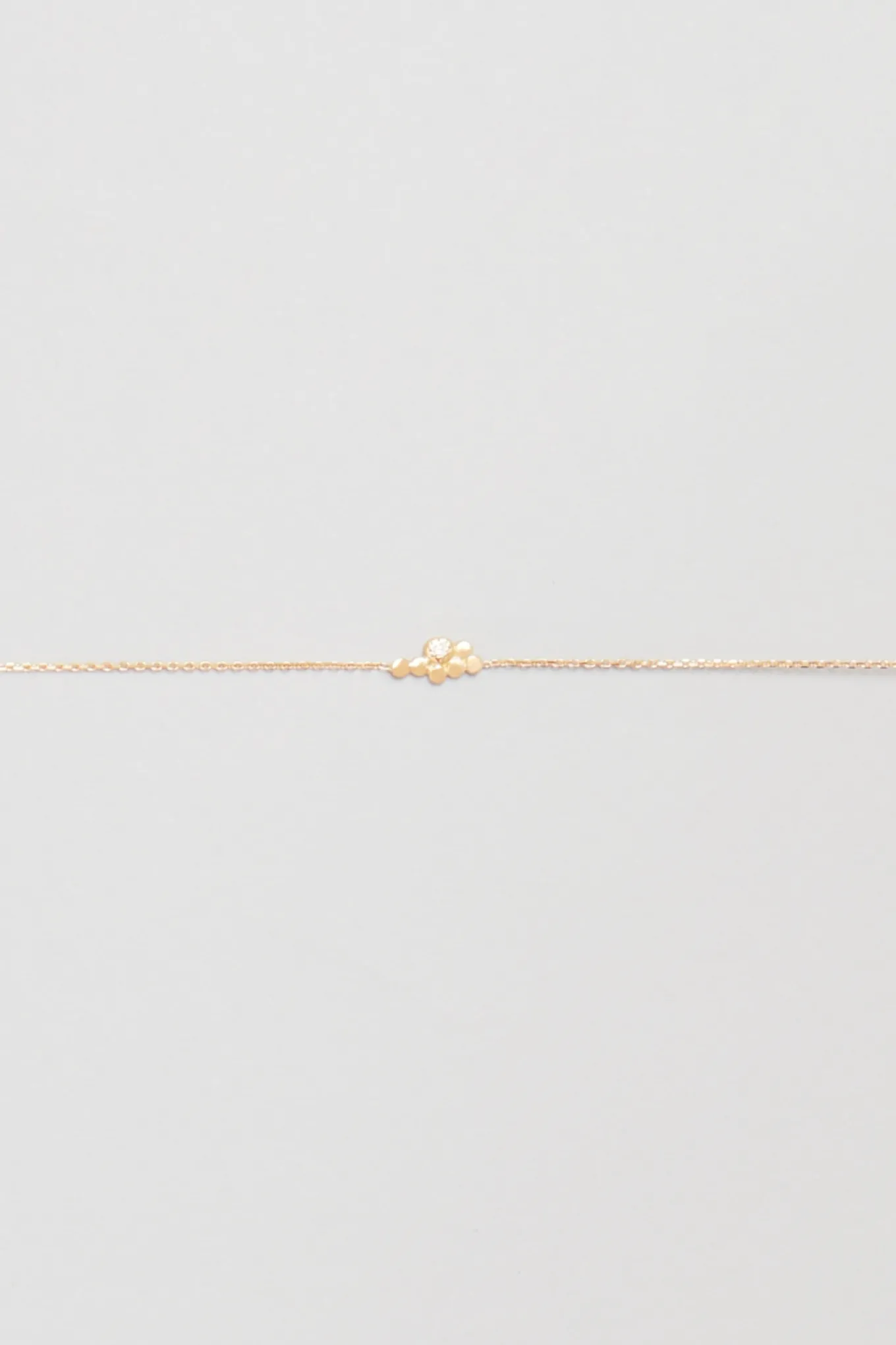 Une pointe de magie au poignet grâce au bracelet Suzanne et à ses pastilles d’or posées les unes à côté des autres. 7 pastilles d’or pour porter chance dont une est délicatement sertie à la main d’un diamant blanc. Bracelet en or 18 carats et composé d’une chaîne fine et délicate, le bracelet Suzanne se décline en or jaune, or rose ou en or blanc.