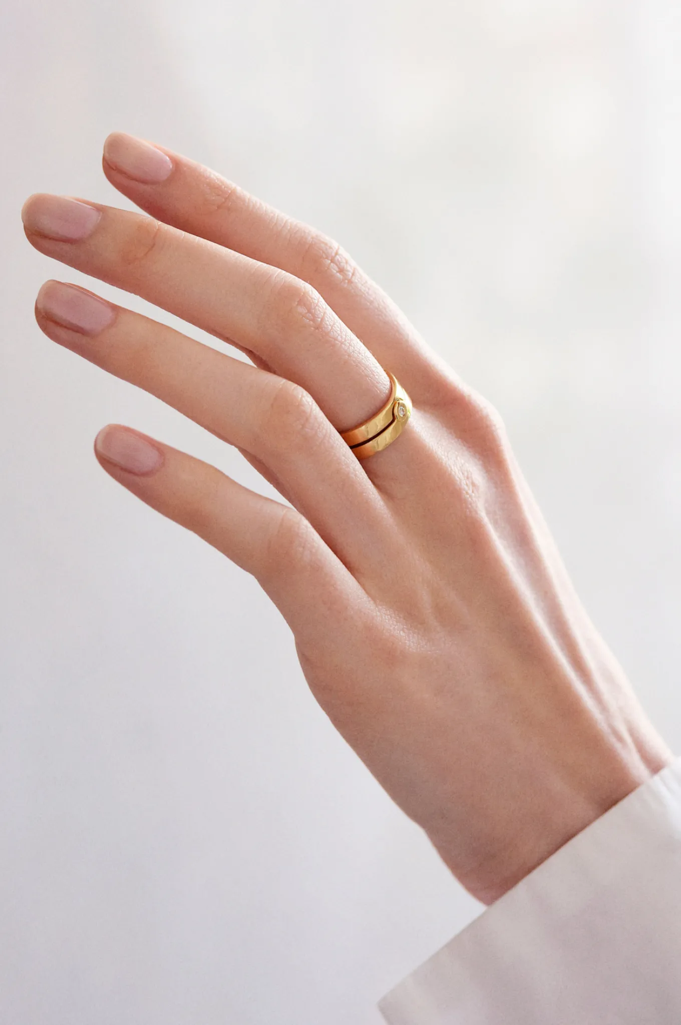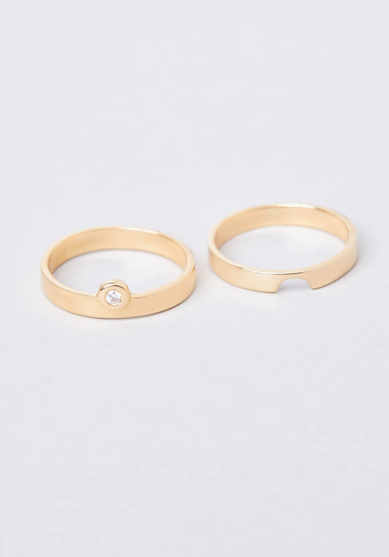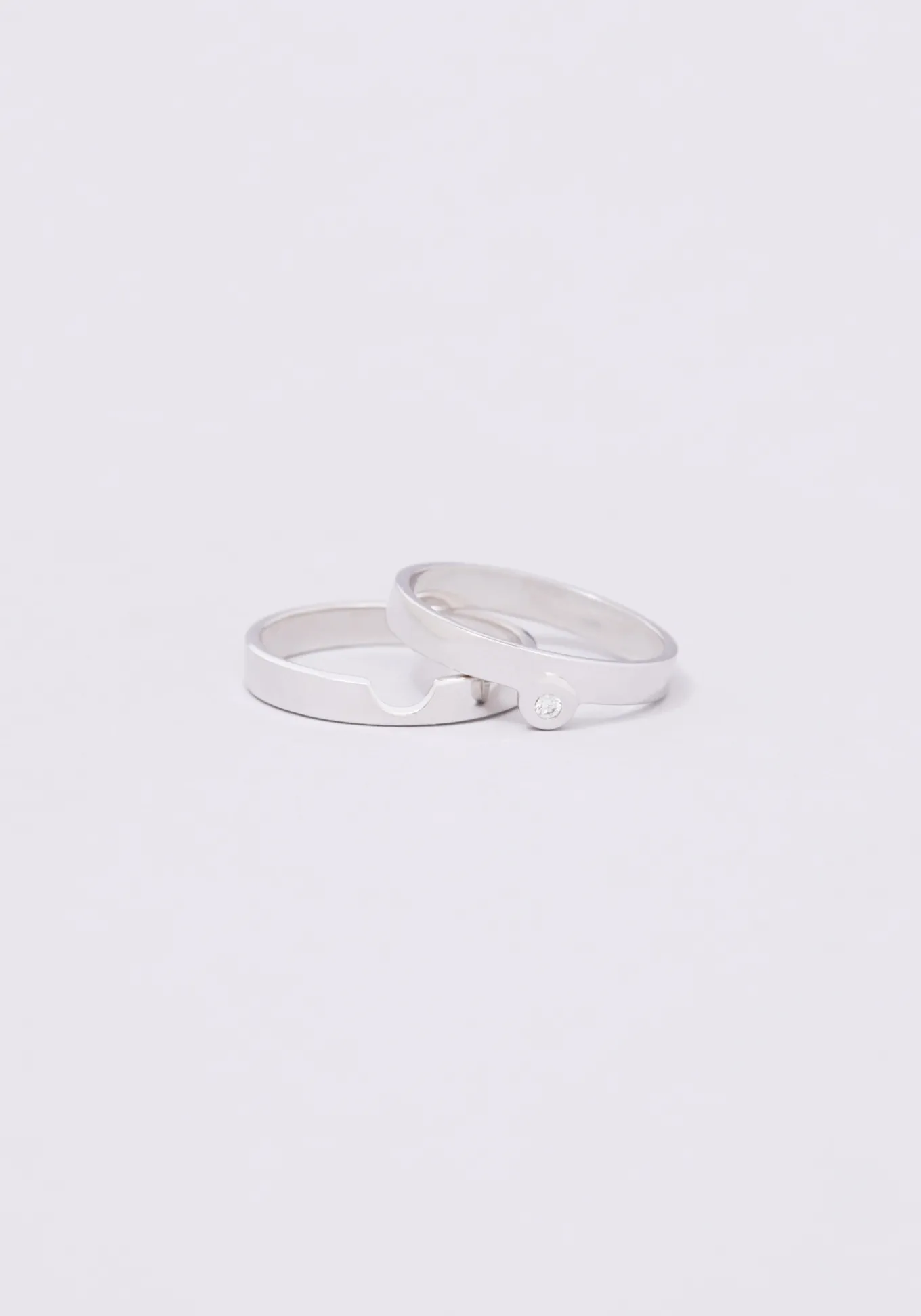 La bague Valentine est composée de deux anneaux signature qui se rejoignent sur une pierre de centre : diamant blanc, diamant noir, saphir ou rubis. La bague Valentine est en or 18 carats et se décline en or jaune, or rose ou or blanc.