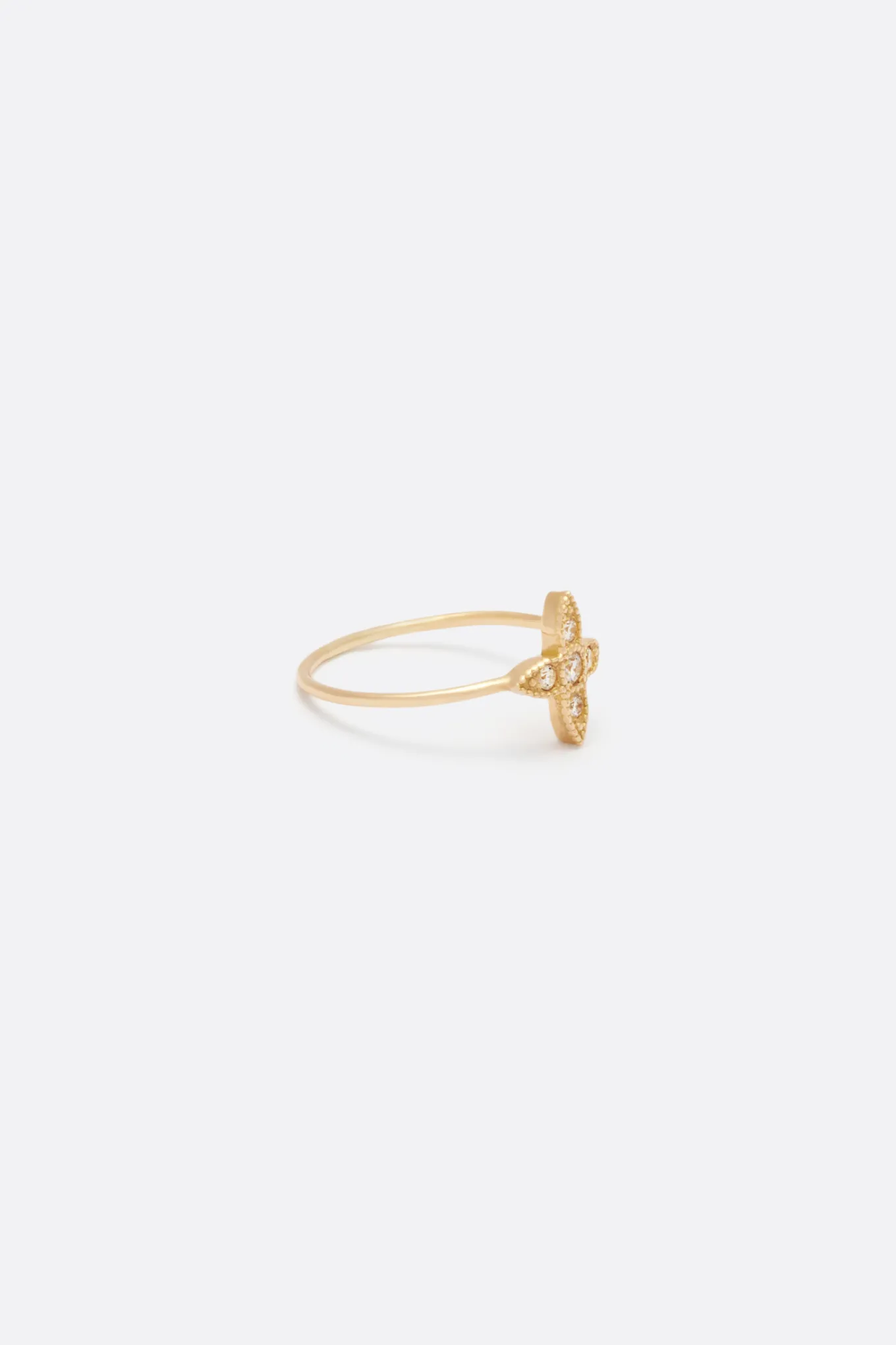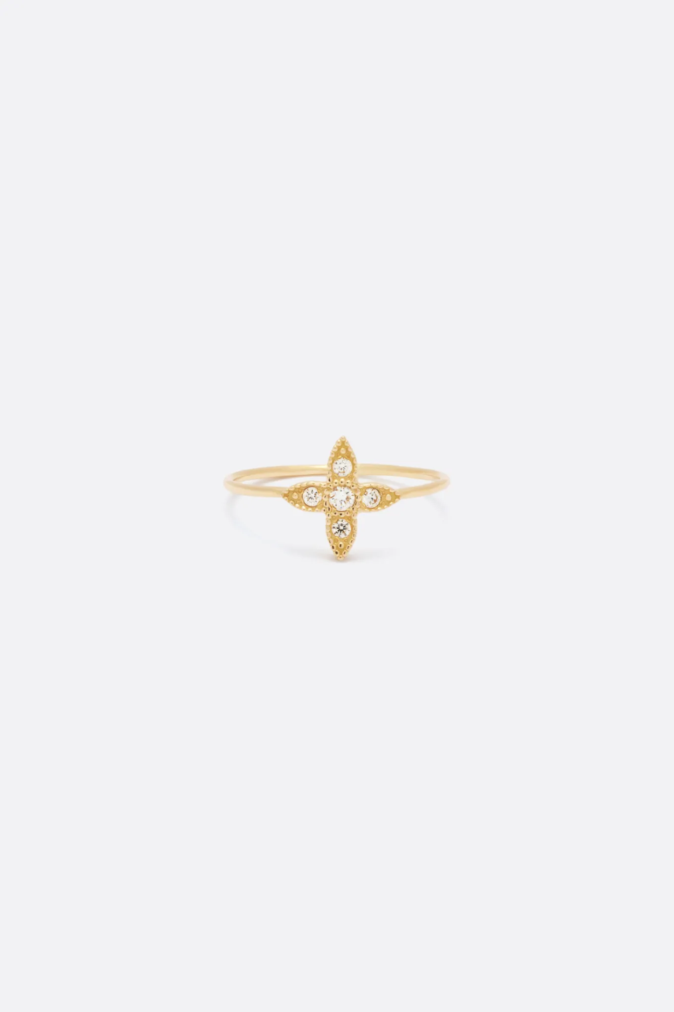 Dans un style vintage, épuré et intemporel, la bague Victoria se distingue par son ornement de diamants blancs lié par l’or 18 carats. Avec féminité et élégance, les diamants blancs brillent dans un esprit bijou de famille. La bague Victoria se décline en or jaune, or rose ou or blanc.