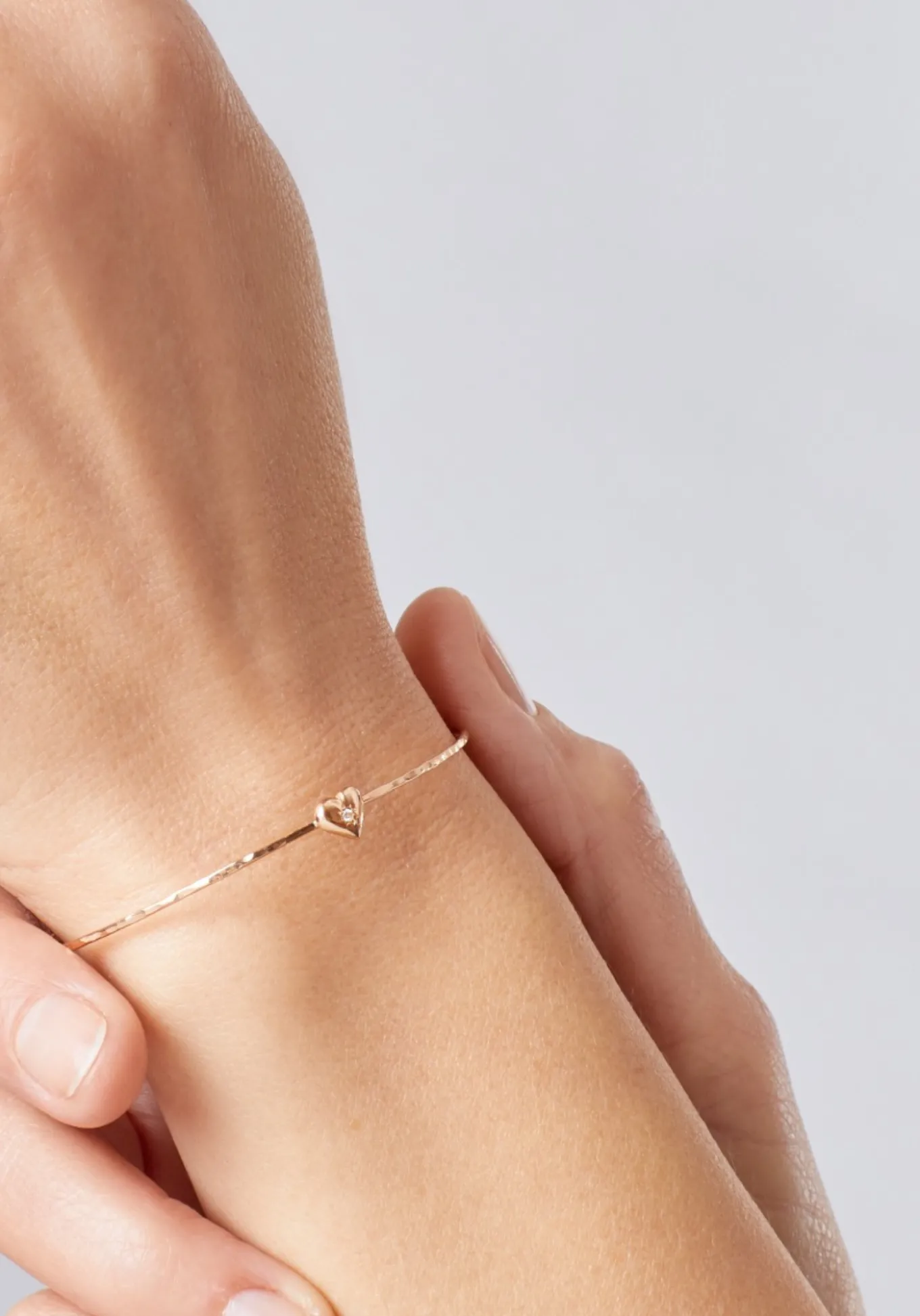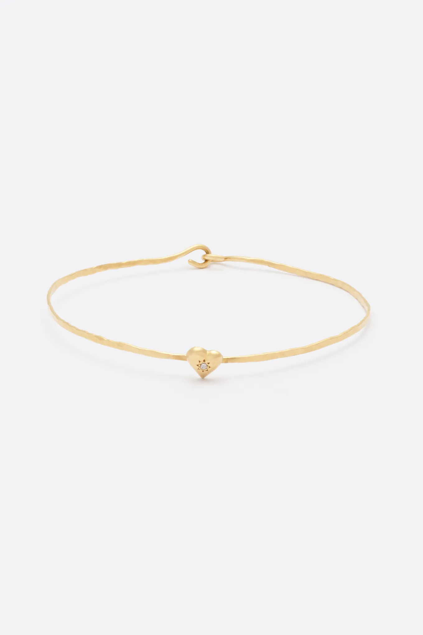 Comme un bijou seconde peau qui souligne la finesse du poignet, le jonc Anatole Coeur est en or 18 carats. Martelé à la main par nos bijoutières, Anatole Coeur présente un coeur serti d’un diamant blanc. Le jonc Anatole Coeur se décline en or jaune, or rose ou or blanc.