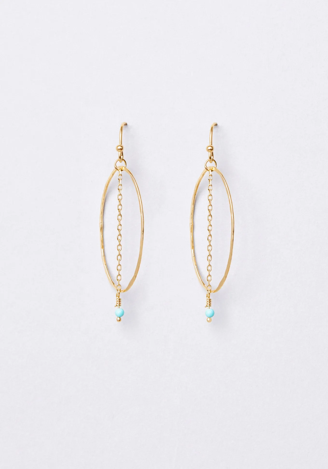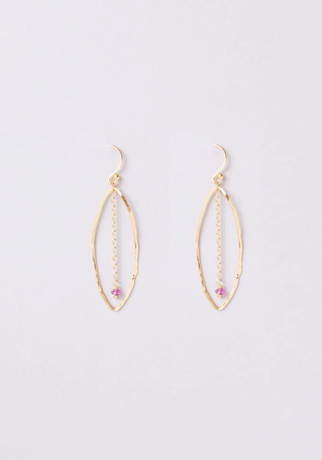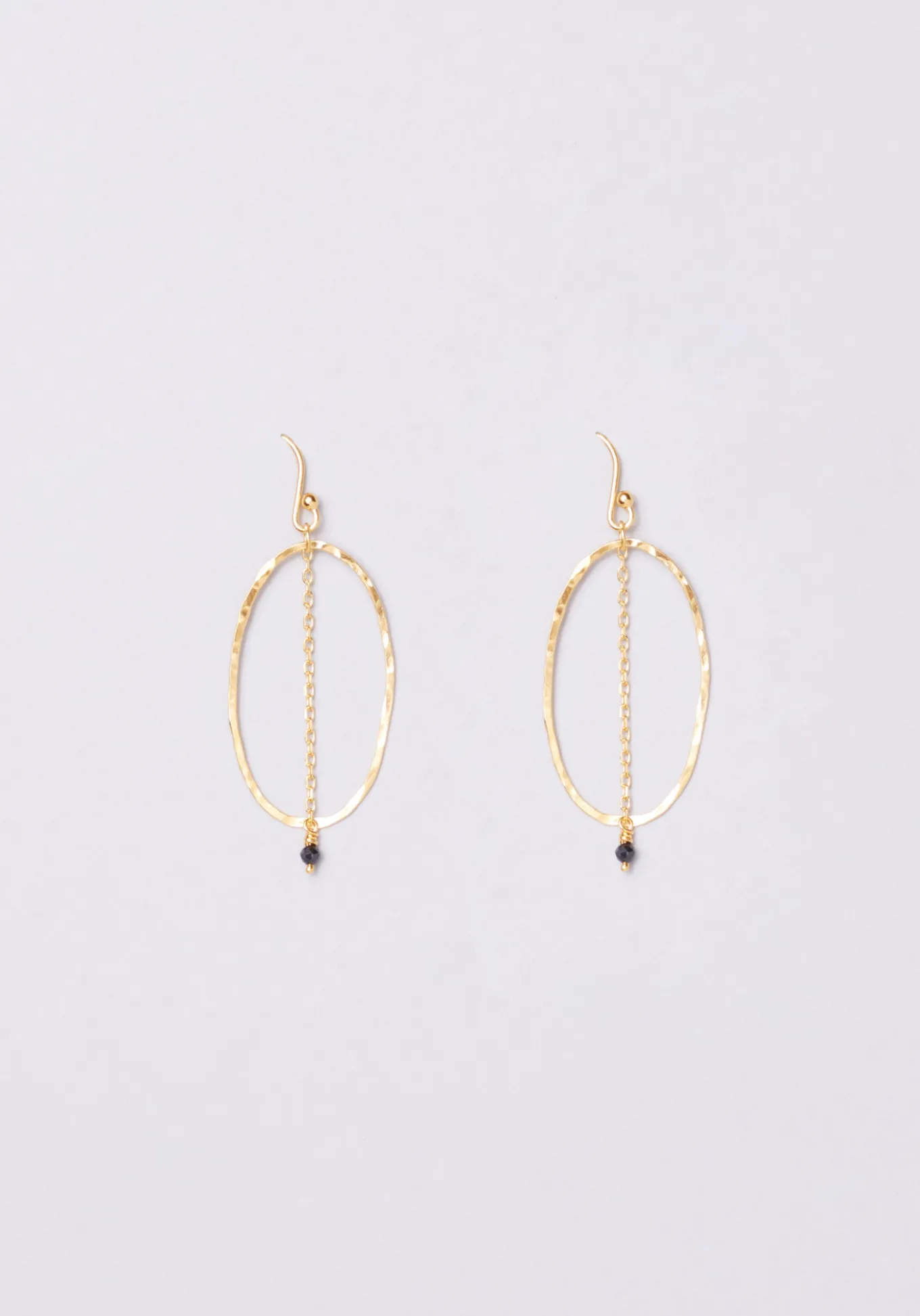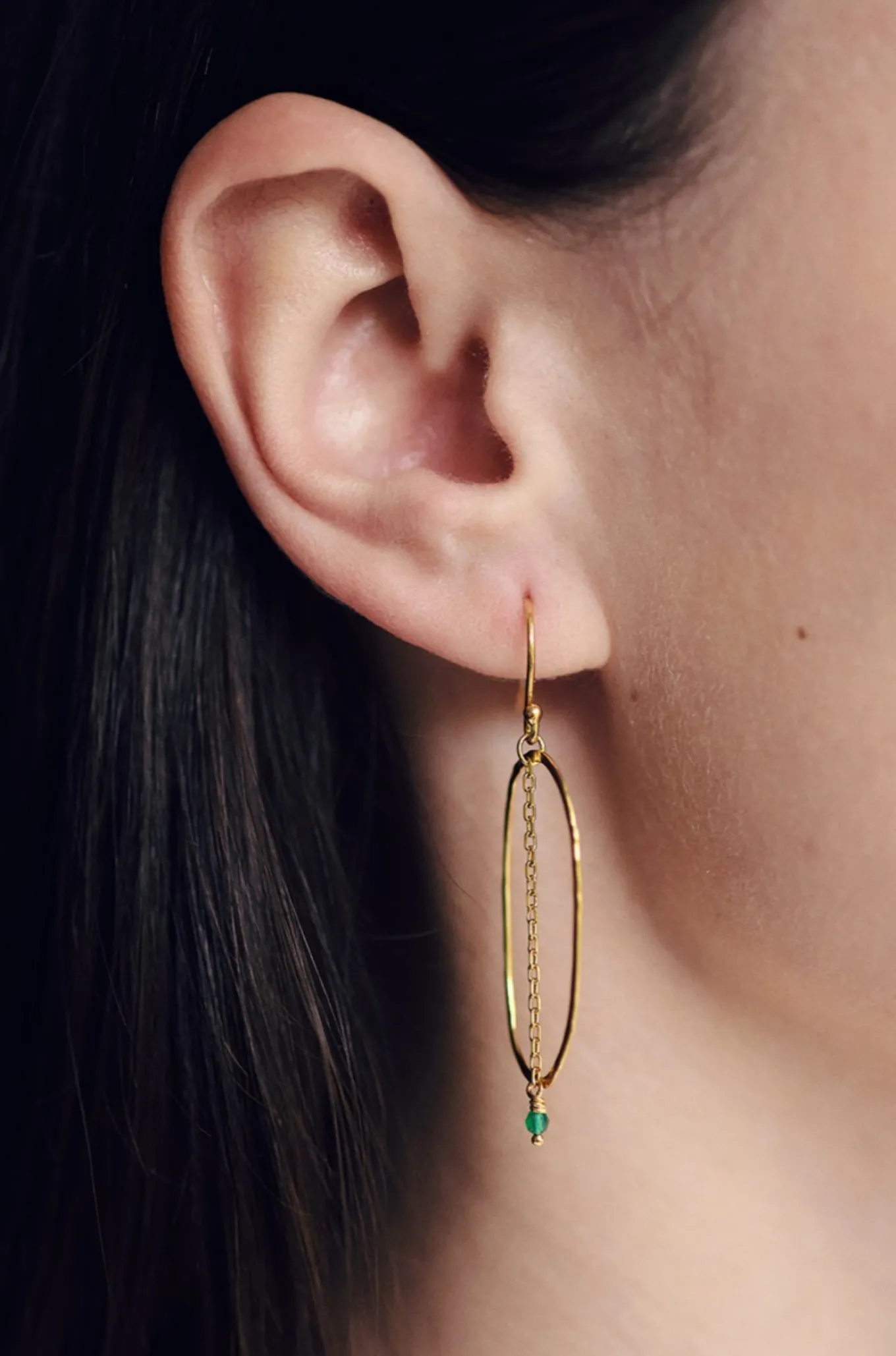 Les boucles Bohème et leur forme surprenante se ponctuent d’une pierre pour contraster l’élégance du vermeil ou de l’argent : labradorite, agate verte, grenat, spinelle noire, turquoise…