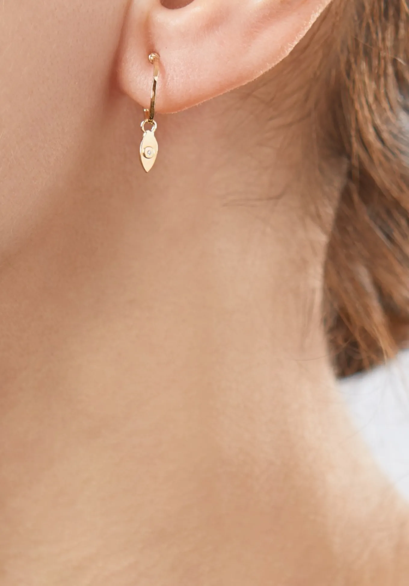 Les créoles Gabin en or 18 carats sont accompagnées de son symbolique oeil signature, serti d’un diamant. Les créoles Gabin se déclinent en or jaune, or rose ou or blanc.