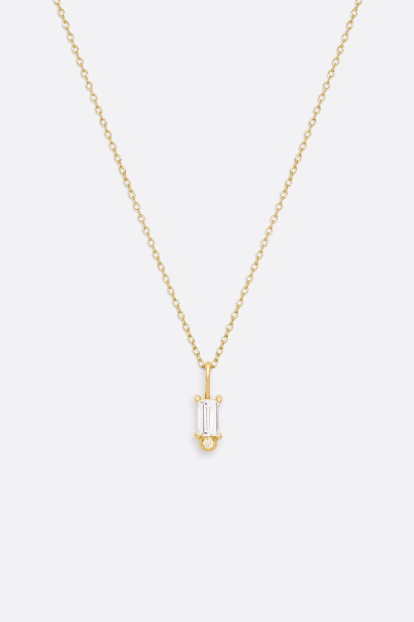 Le collier Doress est un peu le pendentif dont on aurait adoré hériter de notre grand-mère avec sa pierre centrale : un diamant blanc taille baguette, travaillée dans une forme rétro épaulée d’un diamant blanc. Façonné en or 18 carats, on vous laisse choisir sa couleur pour le rendre encore plus unique : or jaune, or rose ou or blanc.