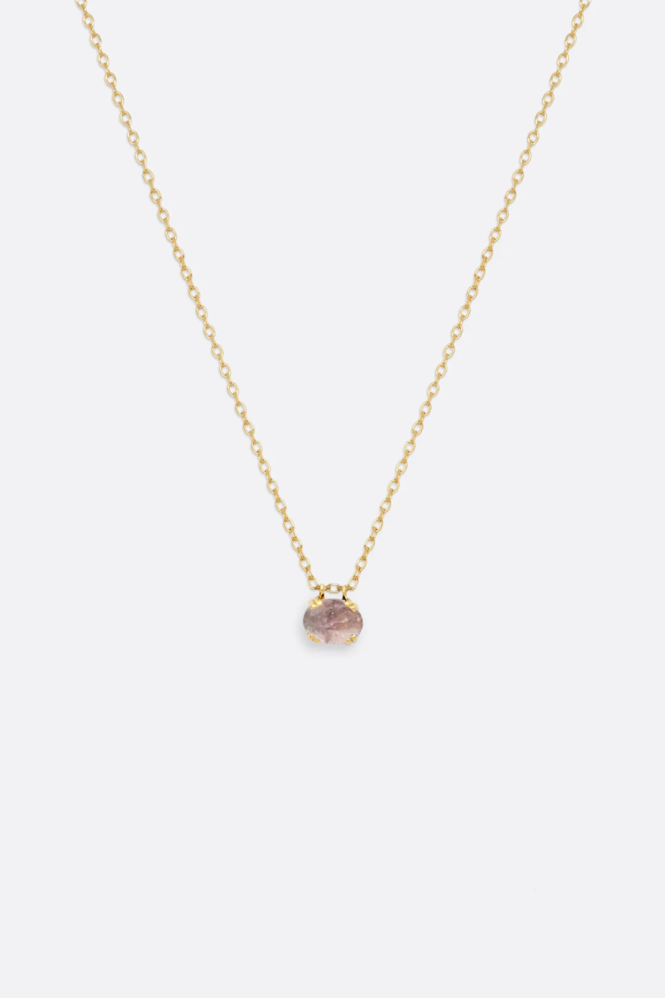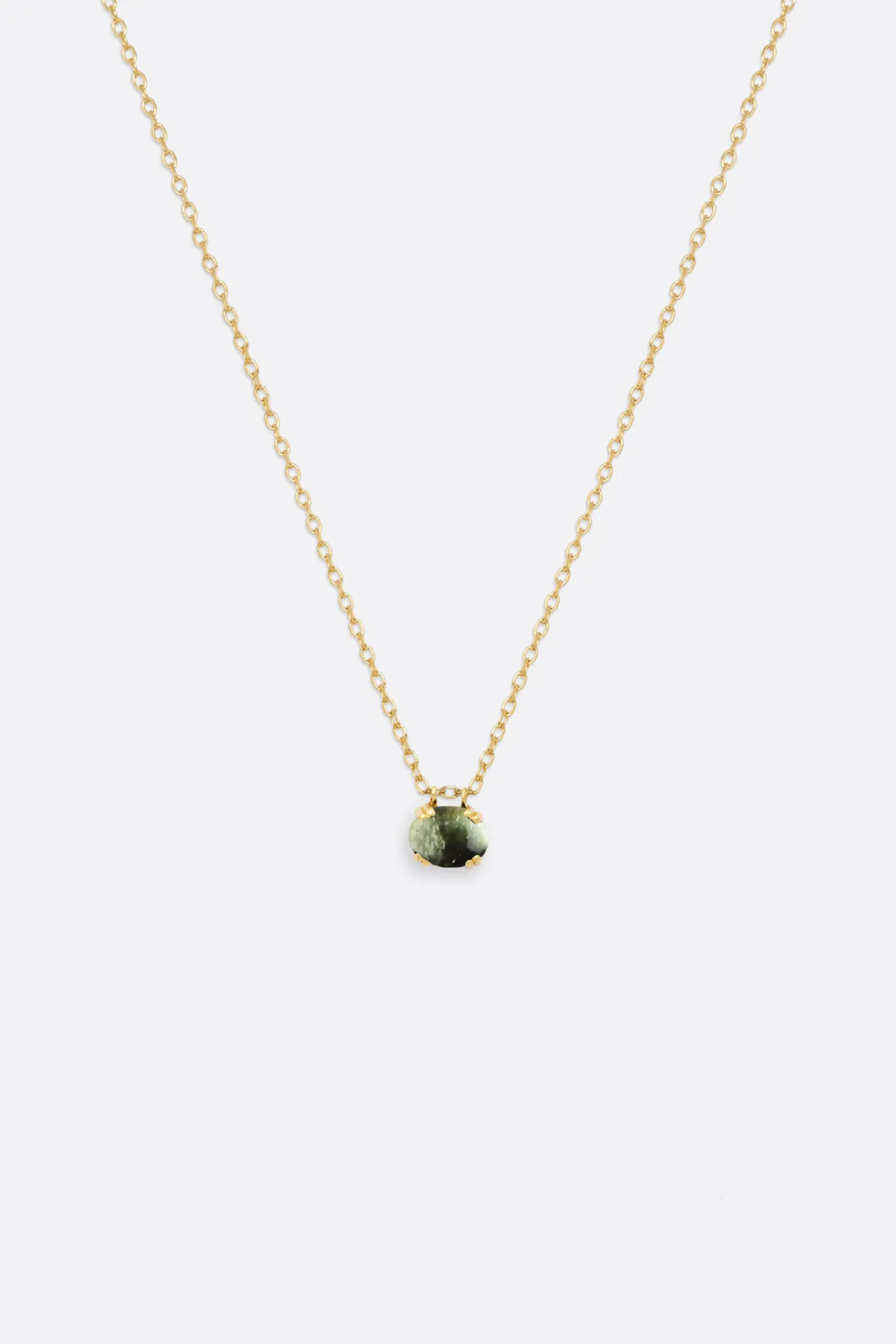 Le collier Elia se distingue par sa tourmaline ovale, verte ou rose, qui accroche la lumière et tous les regards. Collier en or 18 carats, le collier Elia se décline en or jaune, or rose ou or blanc.