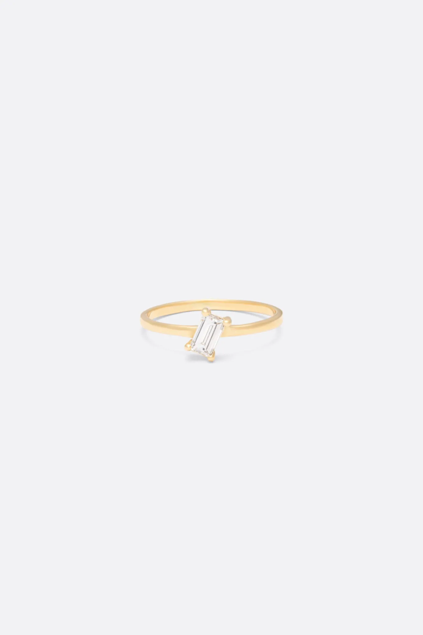 Les bagues Ewandé sont synonymes de simplicité intemporelle chez Monsieur Paris. Ici dans sa version baguette, Ewandé met en valeur sa pierre centrale, un diamant blanc. Façonnée en or 18 carats par nos bijoutières, la bague Ewandé se décline en or jaune, or rose et or blanc.