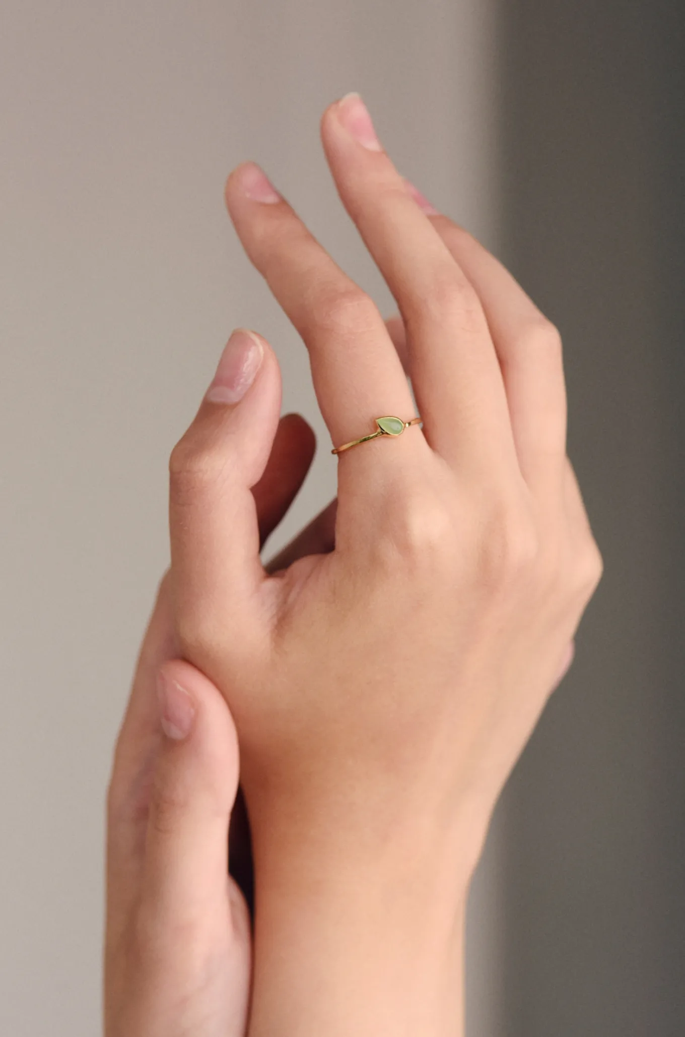 Les bagues Ewandé sont synonymes de simplicité intemporelle chez Monsieur Paris. Ici dans sa version poire, Ewandé met en valeur sa pierre centrale, tourmaline rose, tourmalne verte, cornaline ou chrysoprase. Façonnée en or 18 carats par nos bijoutières, la bague Ewandé se décline en or jaune, or rose ou or blanc.