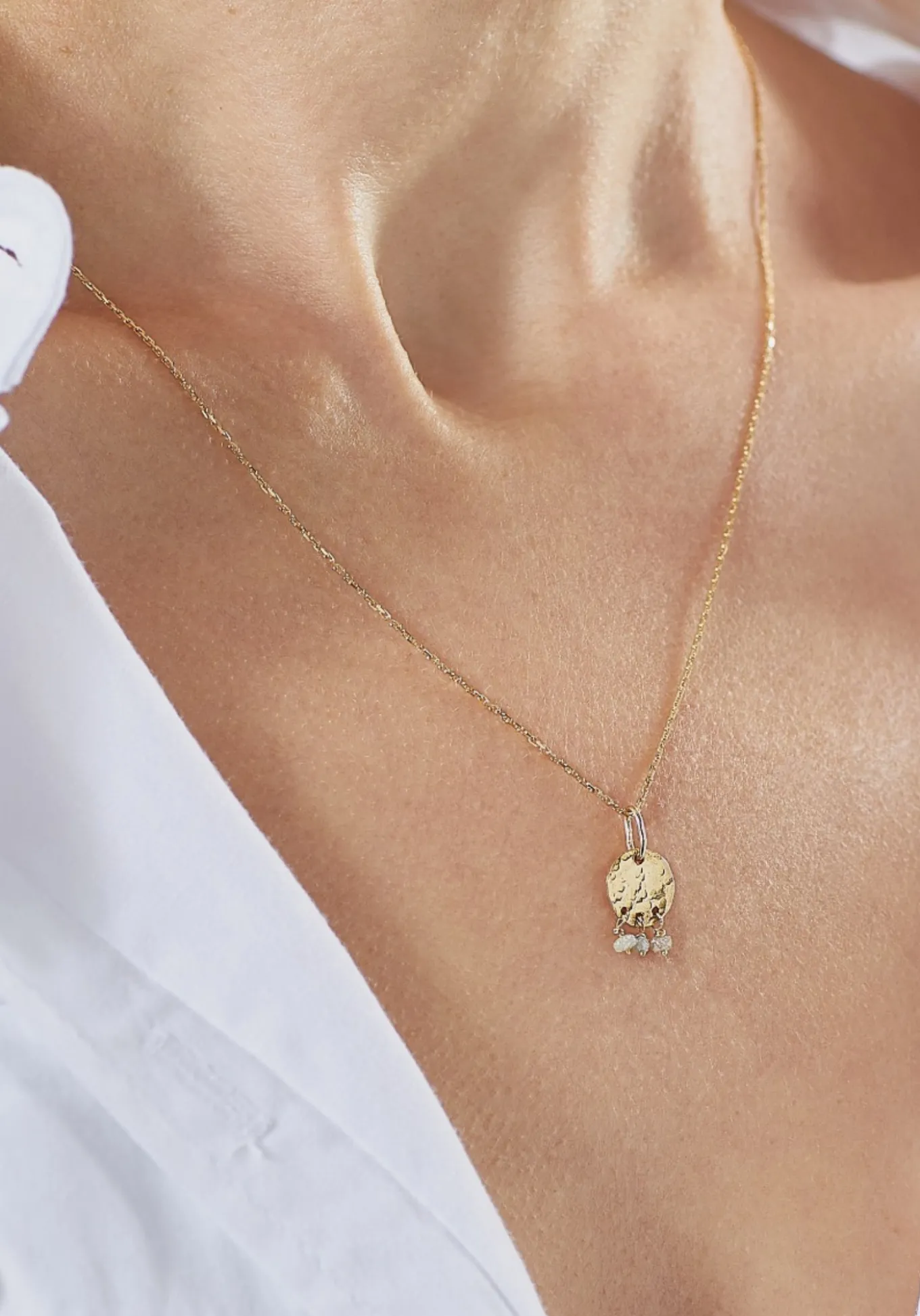 Collier en or 18 carats, le collier Gary diamants se décline en or jaune, or rose ou or blanc. Avec sa pastille d’or martelée à la main et ses trois diamants, le collier Gary diamants a été façonné tout en finesse. Composé d’une chaîne fine et délicate, le collier Gary diamants peut se porter seul ou en accumulation avec vos colliers. Et pour le rendre un peu plus unique, rien de mieux que de faire graver une lettre ou un chiffre au dos de la médaille.