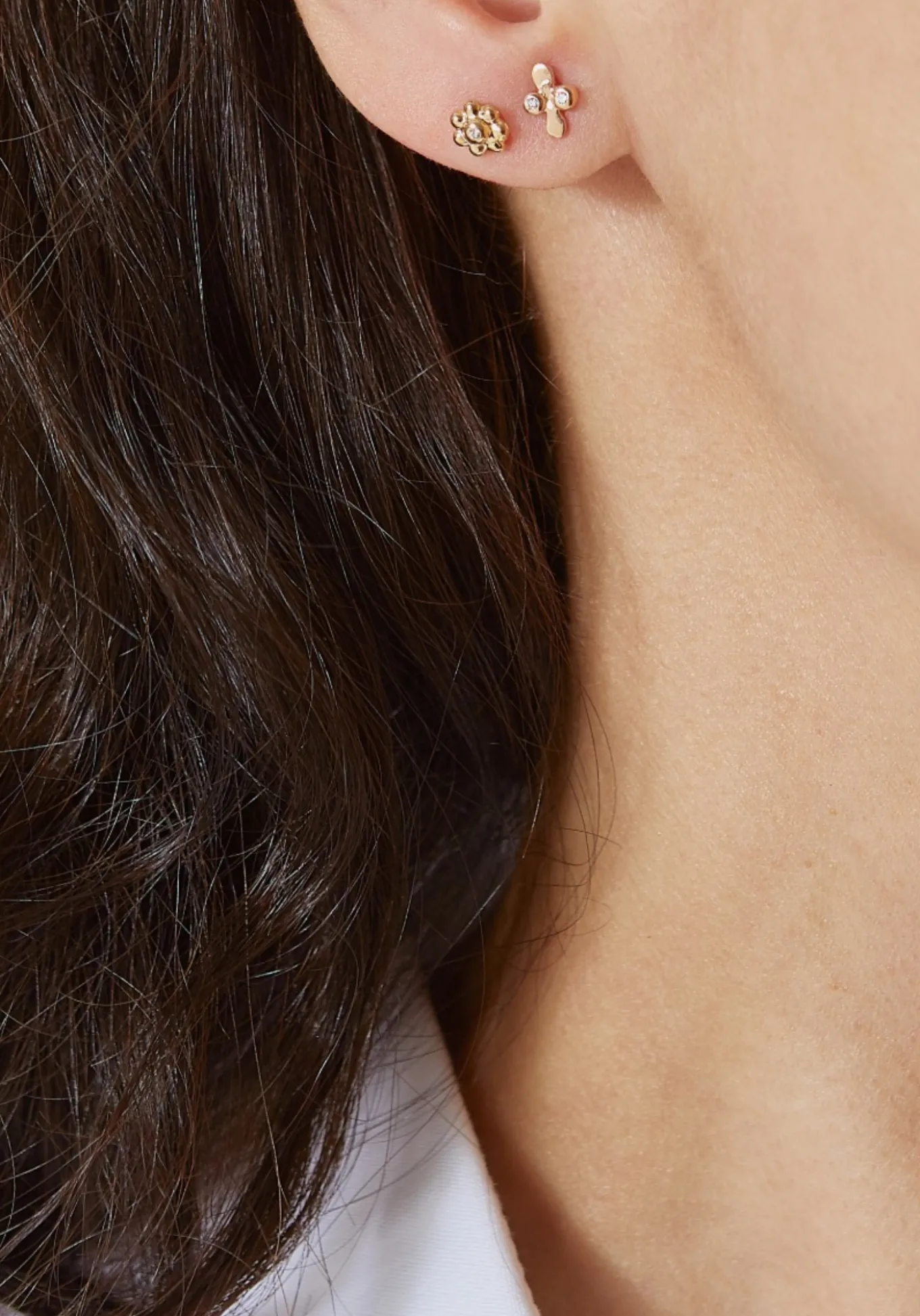 Symbole de l’amour pur, le motif des puces Inès représente la fleur de lys blanche. Puces en or 18 carats, les boucles d’oreilles Inès se décline en or jaune, or rose ou en or blanc. Deux diamants sont sertis à la main par nos bijoutières pour les rendre encore plus précieuses.