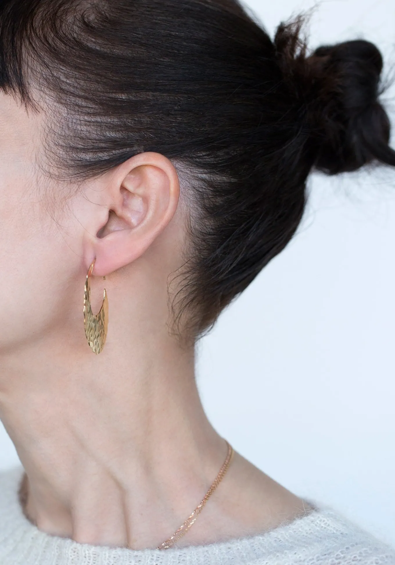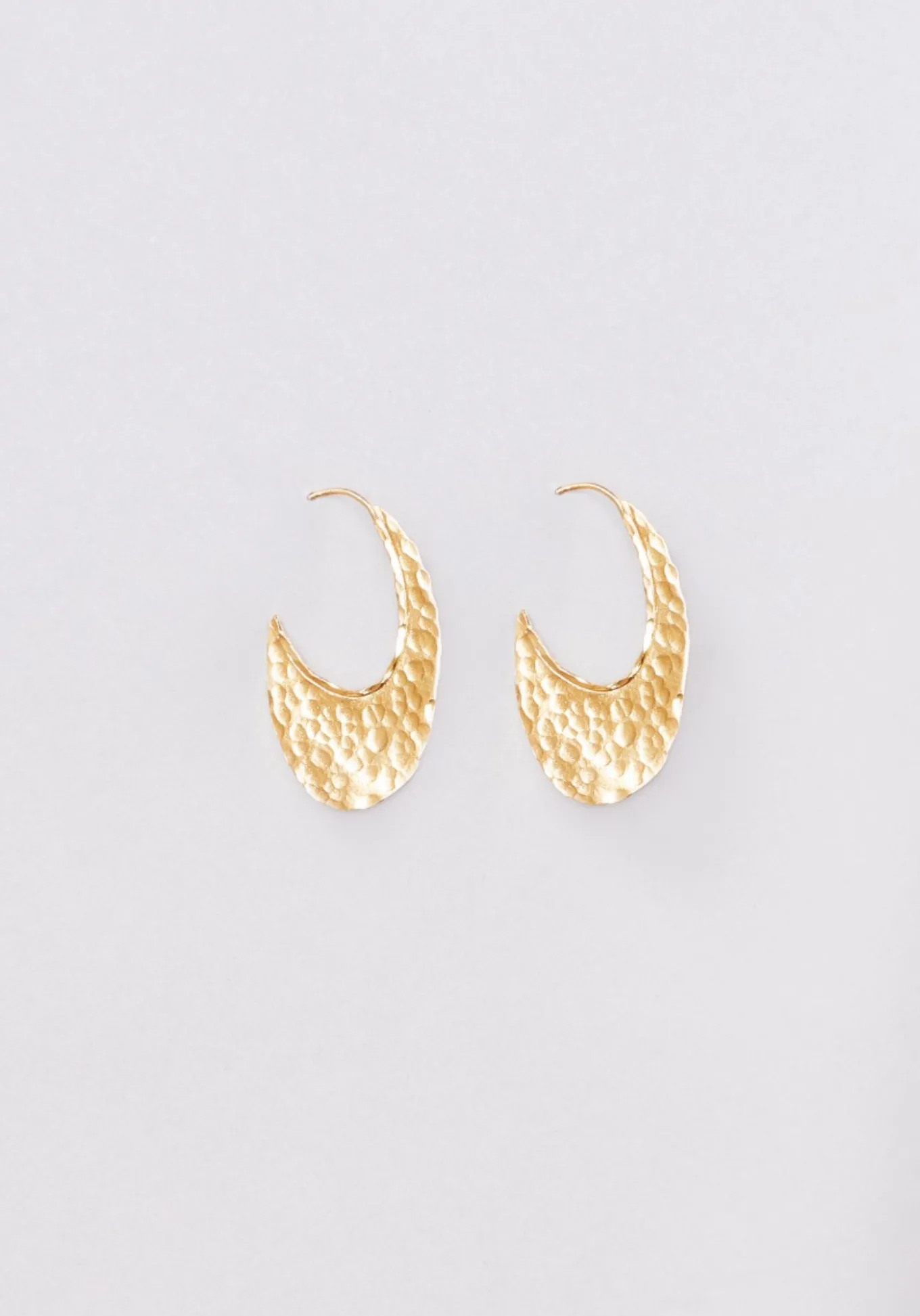 Avec son métal délicatement martelé à la main par nos bijoutières, les boucles Isaure sont une création couture qui feront leur effet. Isaure se décline en vermeil ou en argent.