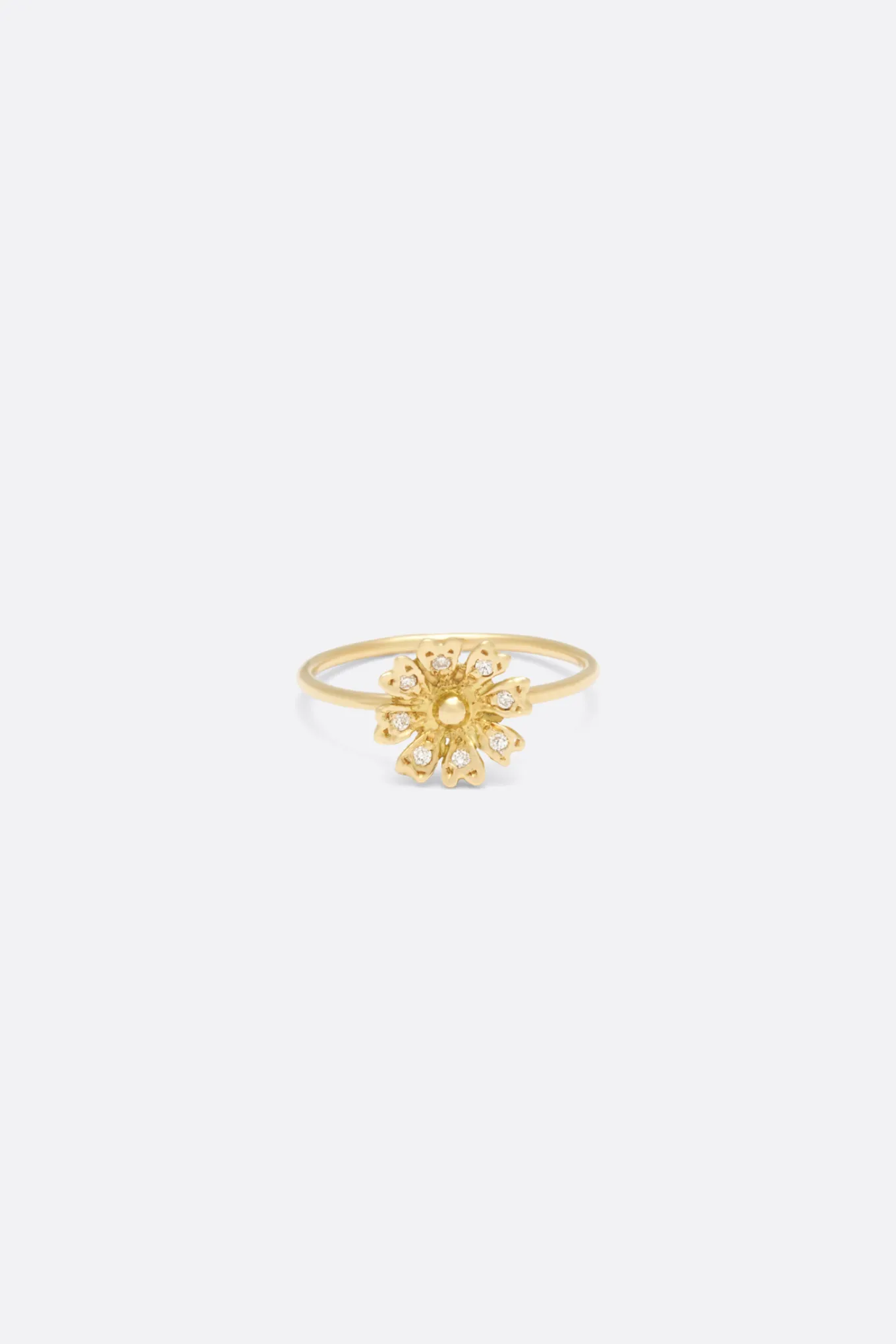 La bague Louiza éclot dans une superbe fleur sertie de diamants blancs ou noirs sur chaque pétale. Bague en or 18 carats, la bague Louiza se décline en or jaune, or rose ou or blanc.