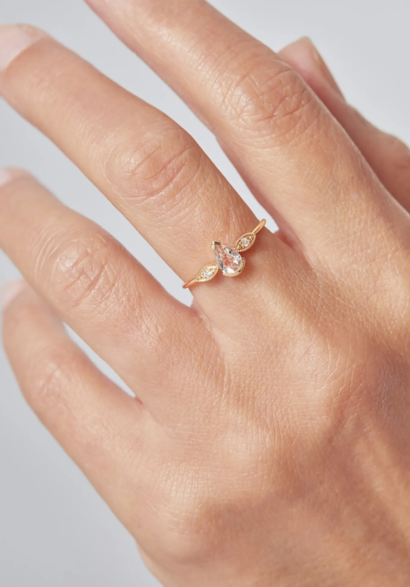 Composée d’une pierre centrale en forme de goutte et deux diamants sertis mille grains qui viennent rehausser l’éclat de la pierre, la bague Mademoiselle est en or 18 carats. Une morganite à teinte rosée, une citrine légèrement ambrée ou une tourmaline au vert profond pour la pierre centrale. La bague Mademoiselle se décline en or jaune, or rose ou or blanc.
