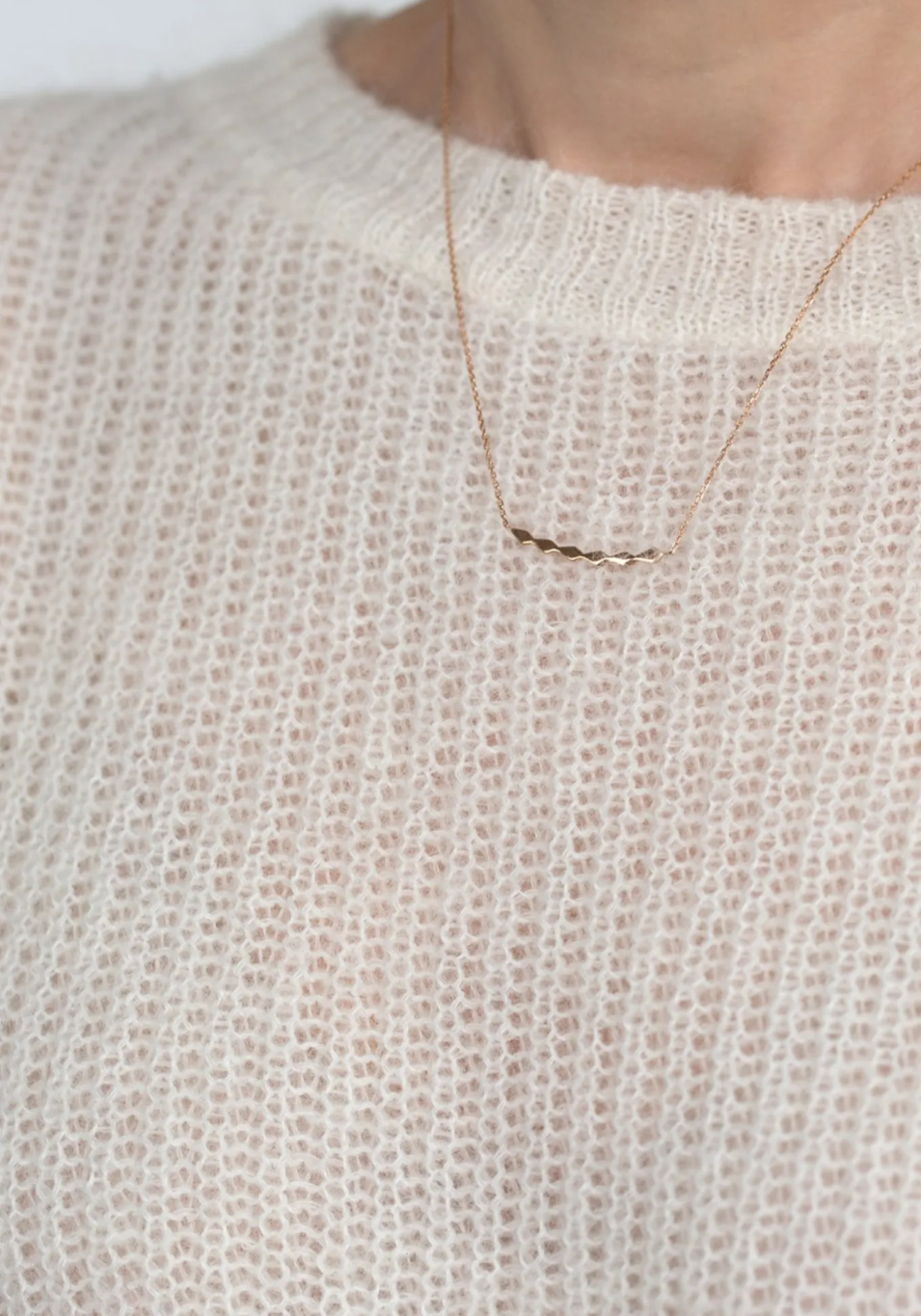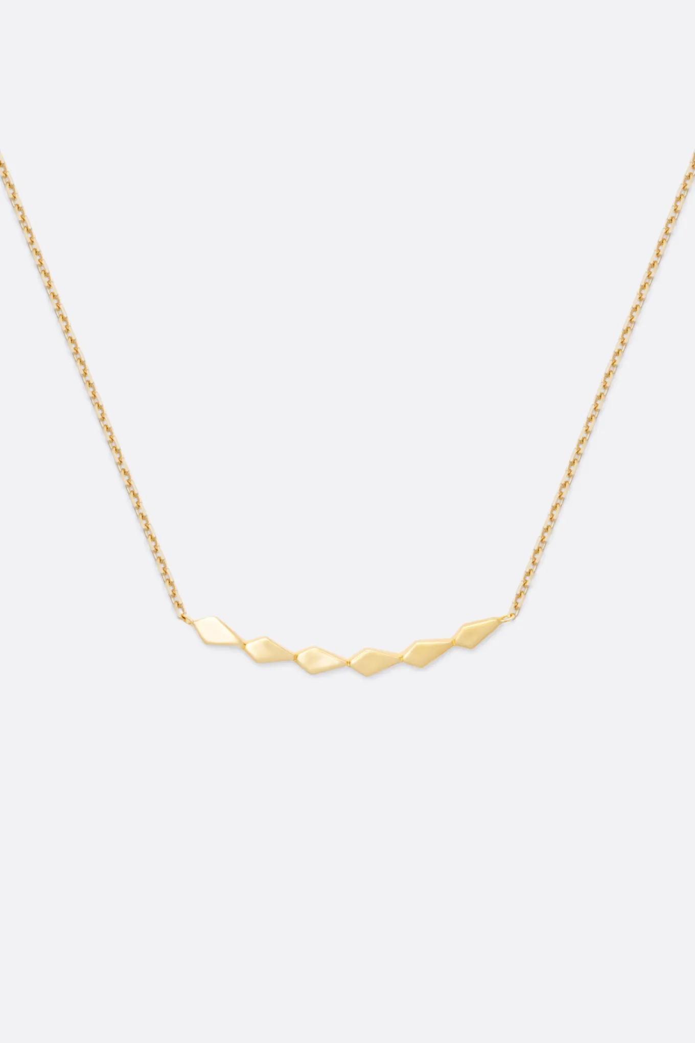 Le collier Manuela est un modèle intemporel qui accompagne le quotidien avec la fantaisie de ses losanges d’or posés les uns à côté des autres. Façonné à la main par nos bijoutières, le collier Manuela, avec sa chaine fine et délicate, est en or 18 carats et se décline en or jaune, or rose ou or blanc.