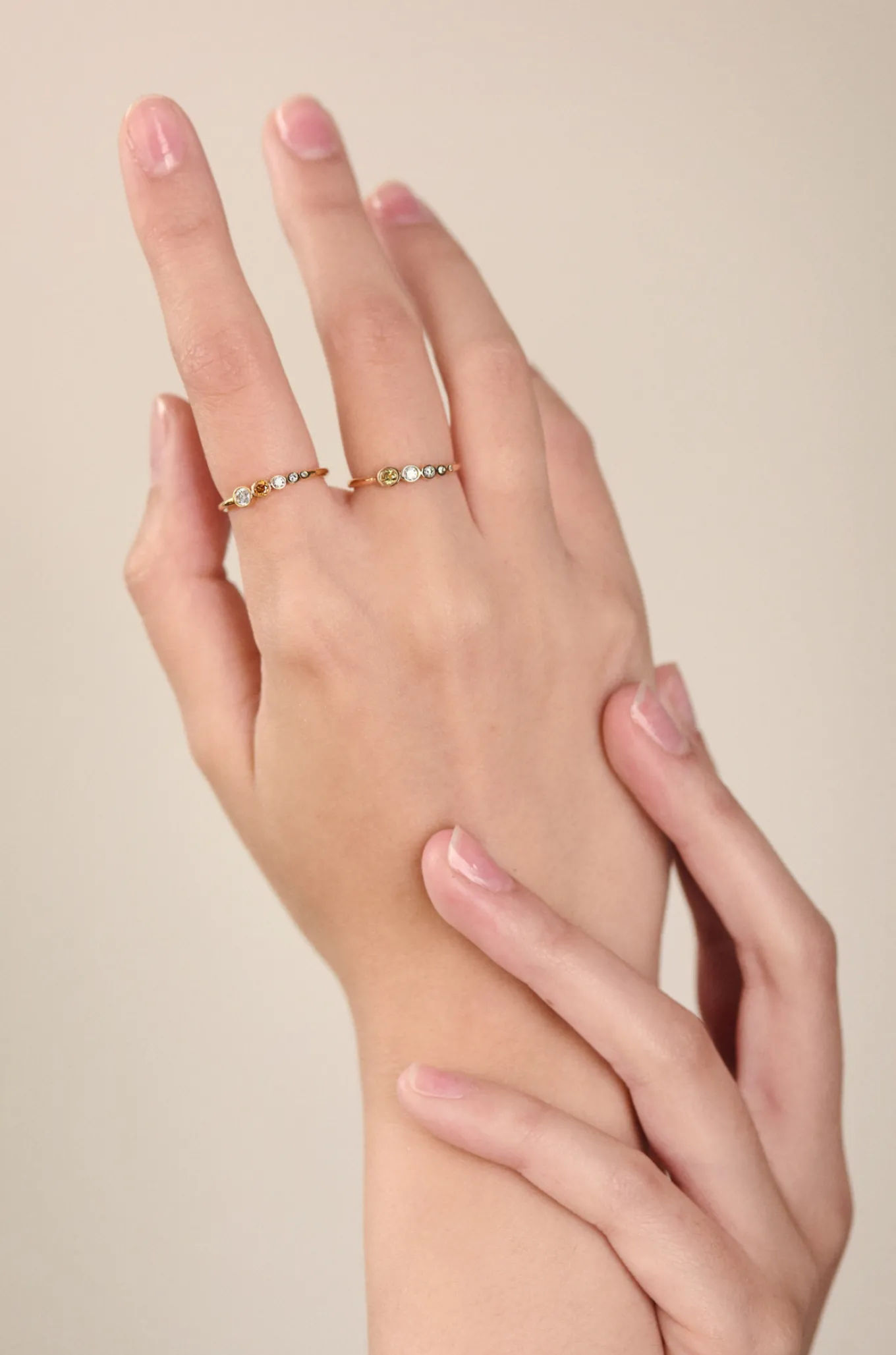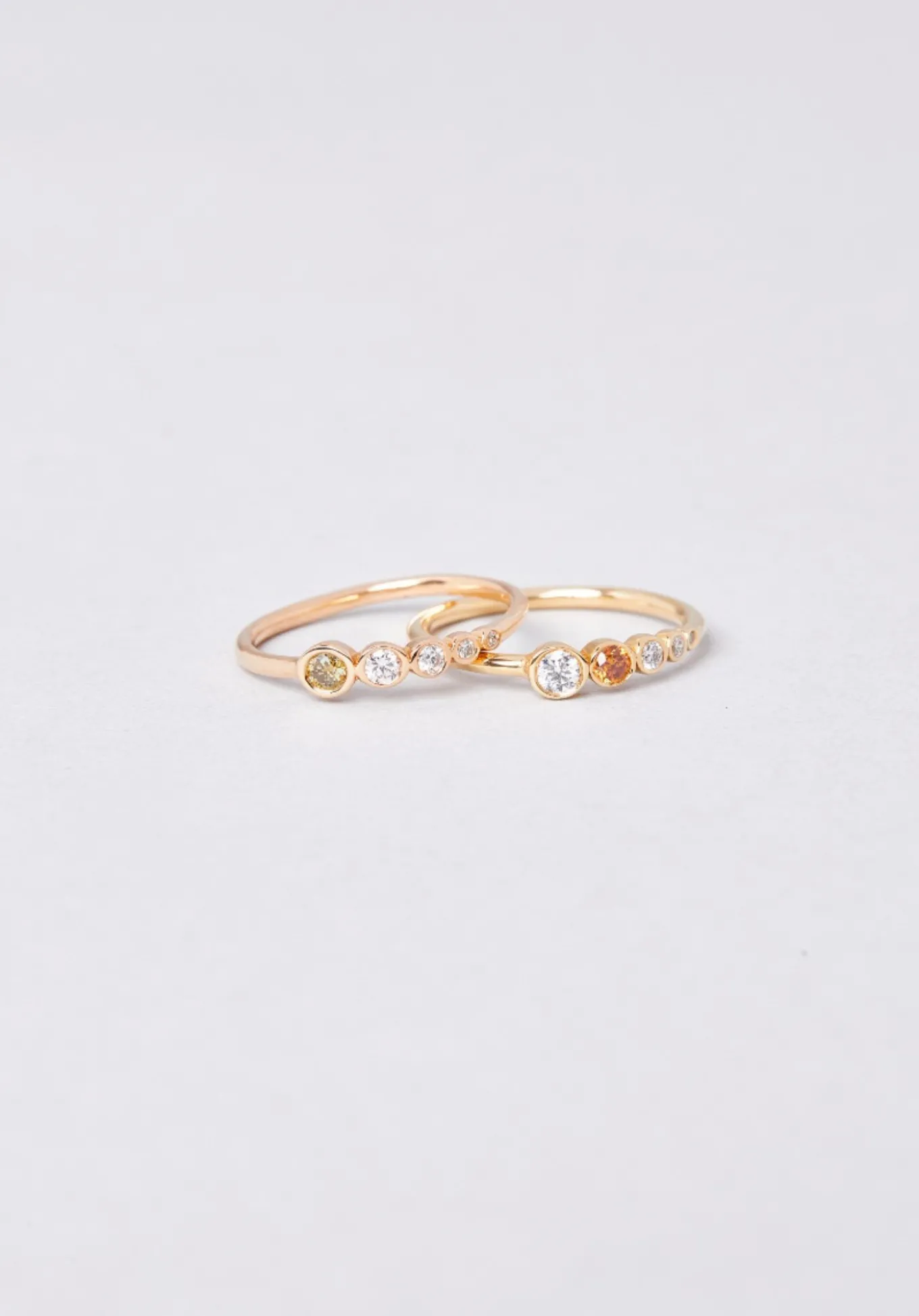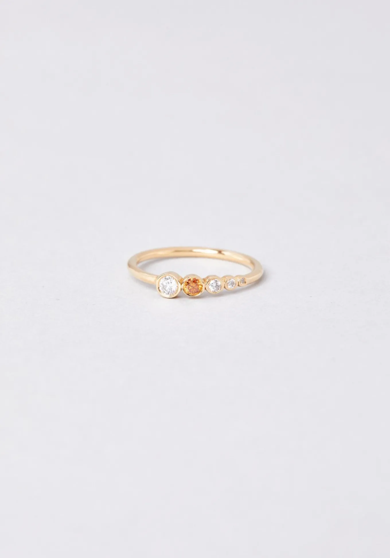 Avec son style épuré et intemporel, la bague Nadja se distingue par ses pastilles d’or et son diamant cognac contrasté par la pureté de quatre diamants blancs. Idéale pour une bague de fiançailles portée tous les jours, la bague Nadja se décline en or jaune, or rose ou or blanc.