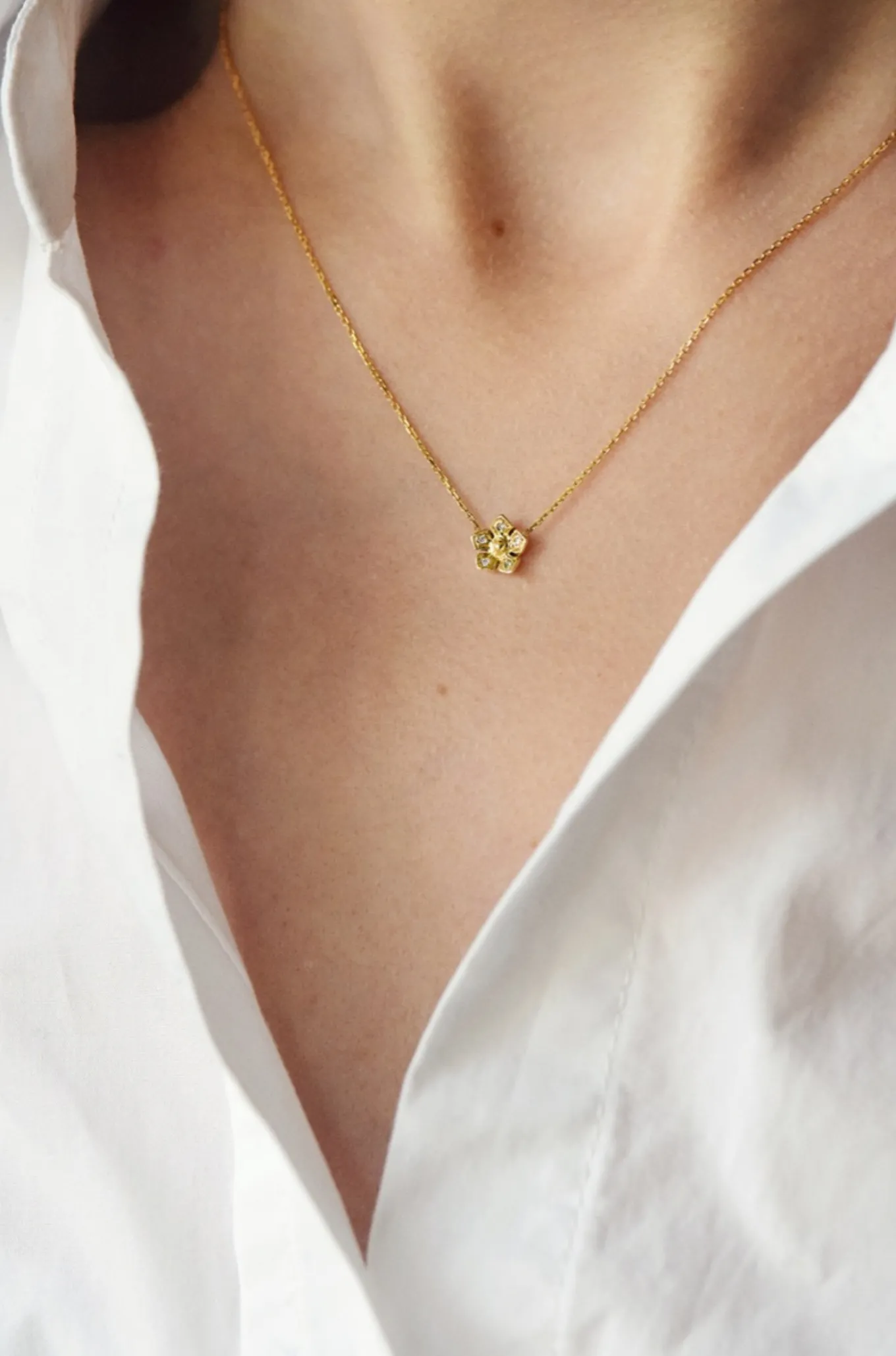 Fleur éternelle, Nina est faite de diamants blancs dont l’éclat ne fanera jamais. Savamment travaillé jusque dans les moindres détails, ce pendentif est parfait pour tous les jours comme pour les grandes occasions. Le collier Nina est en or 18 carats et se décline en or jaune, or rose ou or blanc.