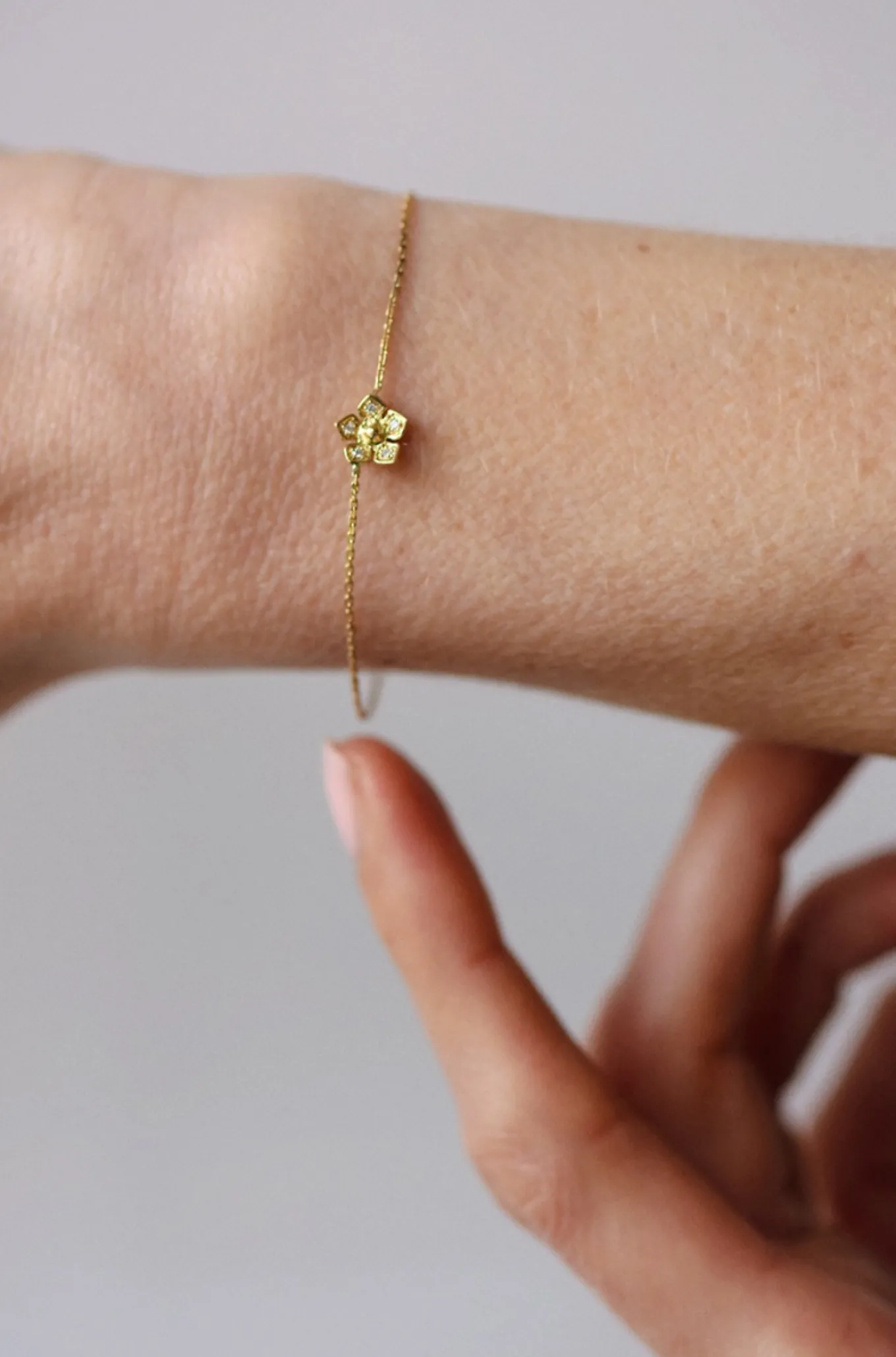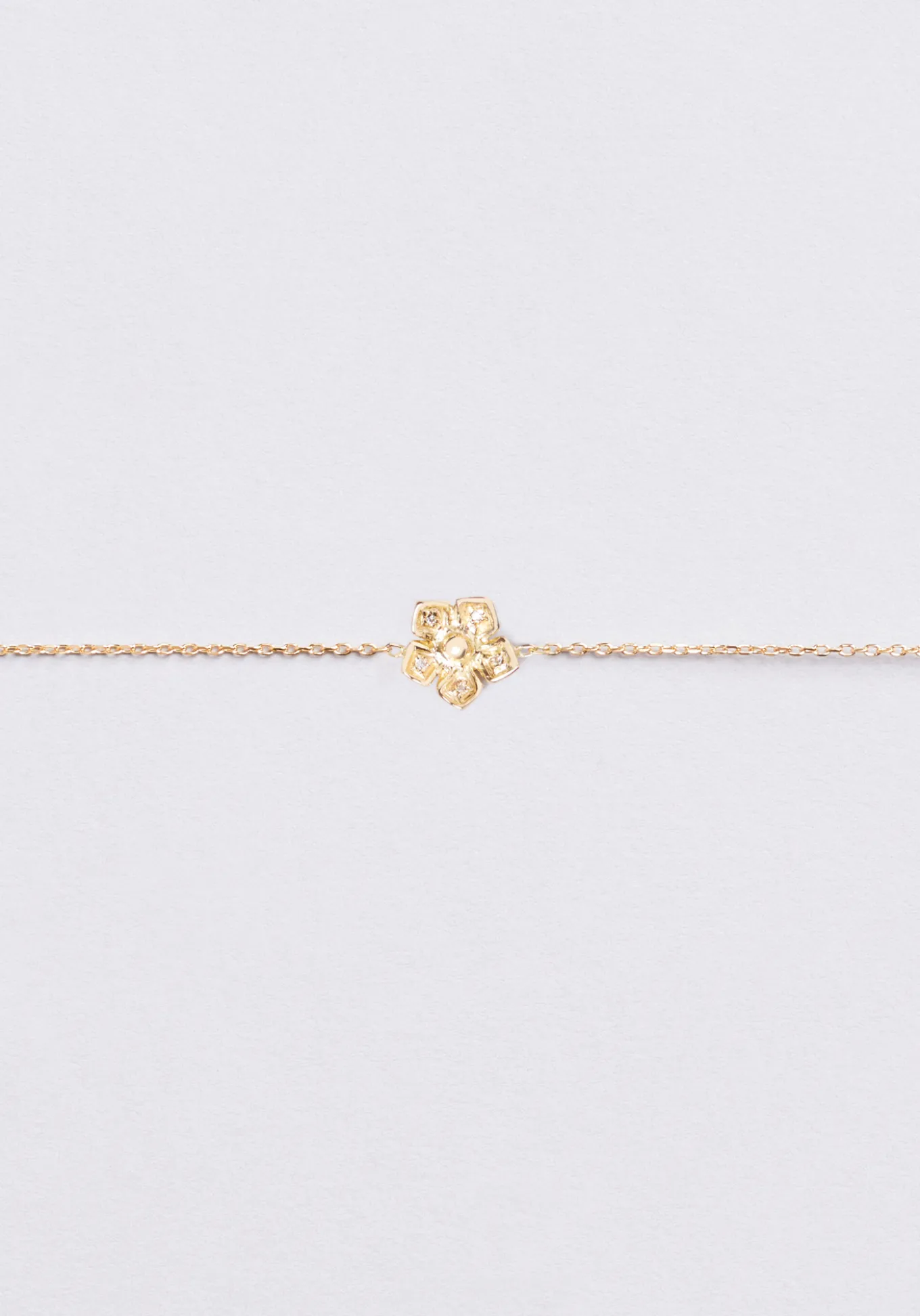 Le bracelet Nina éclot sur le poignet dans une délicate fleur dorée sertie d’un diamant sur chaque pétale. Bracelet en or 18 carats, le bracelet Nina se décline en or jaune, or rose ou or blanc.