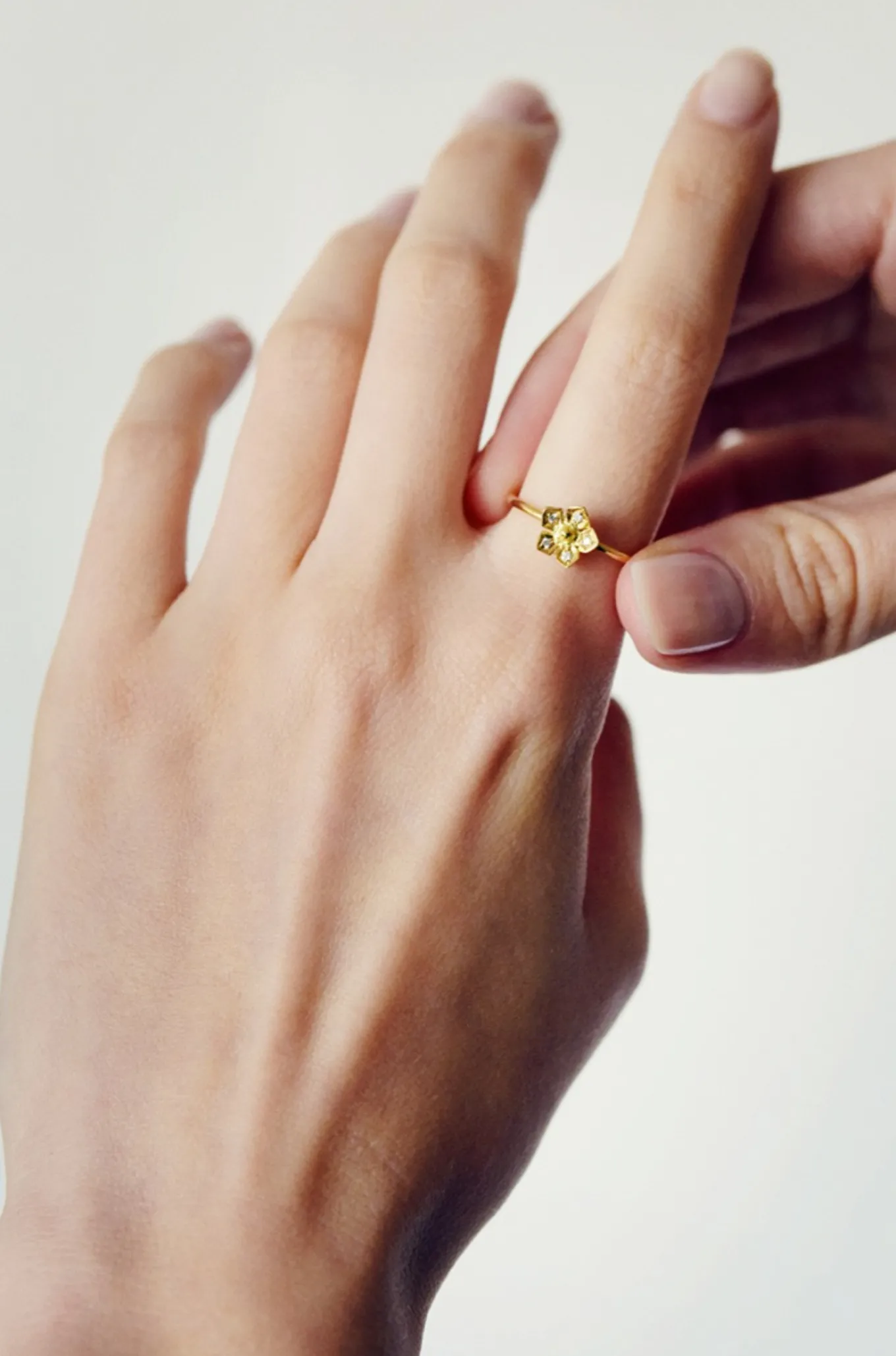 La bague Nina s’épanouit sur une délicate fleur sertie de diamants sur chaque pétale. Poétique et fascinante la bague Nina est en or 18 carats. La bague Nina se décline en or jaune, or rose ou or blanc.