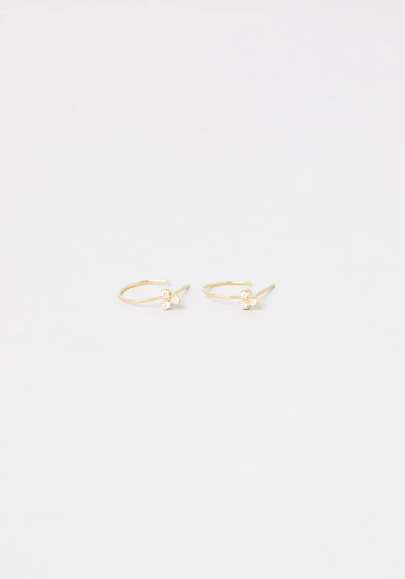 Épurées et harmonieuses, les boucles Olympe sont composées d’un fil fin d’or martelé à la main par nos bijoutières. Les fines boucles en or 18 carats s’élancent dans un cercle inachevé et poétique, et se finissent sur un triptyque de diamants signature pour orner le lobe d’oreille. Olympe se déclinent en or jaune, or rose ou or blanc.