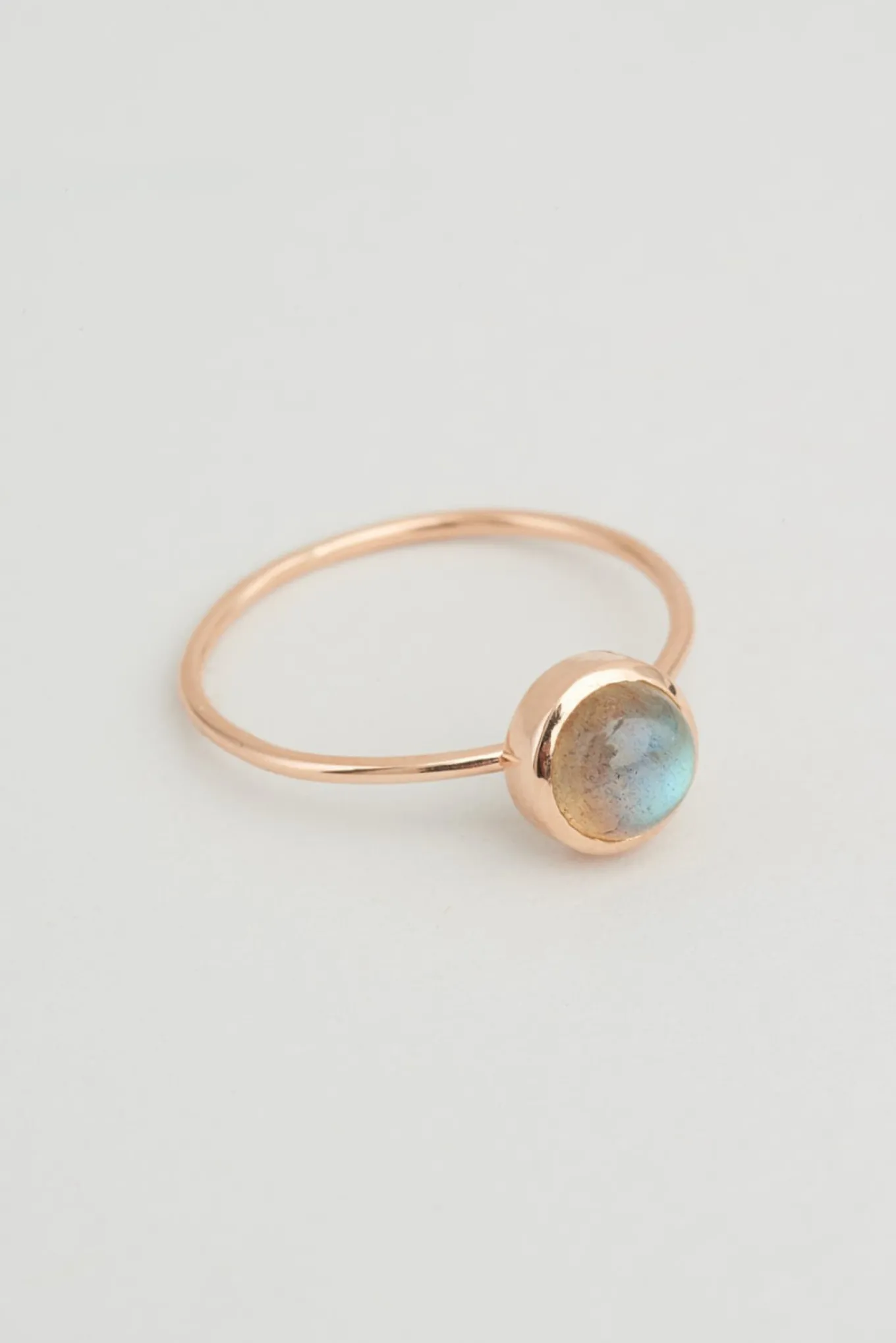 Bague en or 18 carats, Ophélie fait la part belle à sa pierre de centre : labradorite grise, grenat ou aigue marine. La bague Ophélie est disponible en or jaune, or rose ou or blanc.