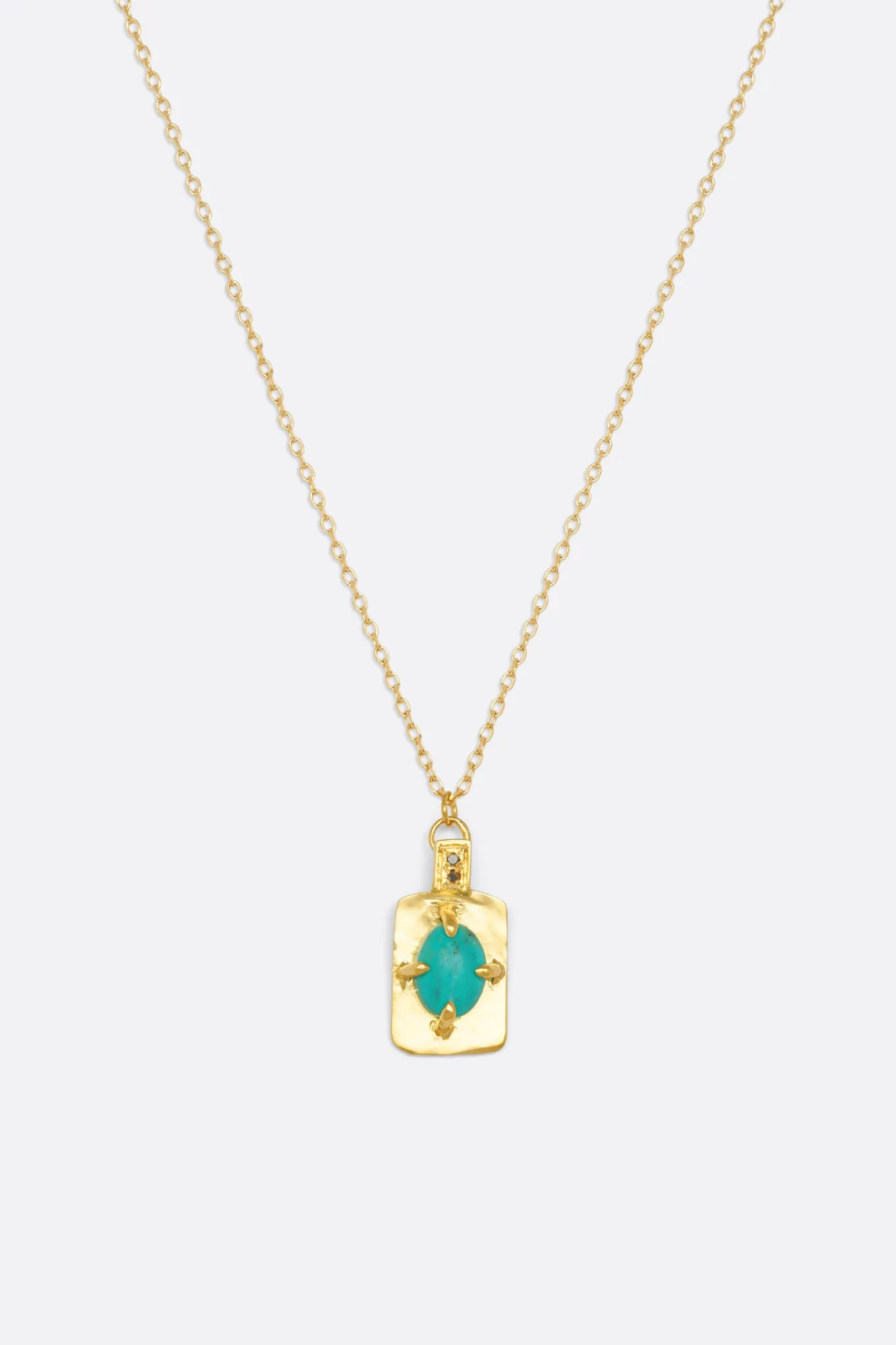 Le collier Oscar et sa médaille rectangulaire sont composés d’une turquoise, quartz rose ou d’une cornaline et de deux diamants noirs sertis à la main par nos bijoutières. Le collier Oscar se déline en vermeil ou en argent.