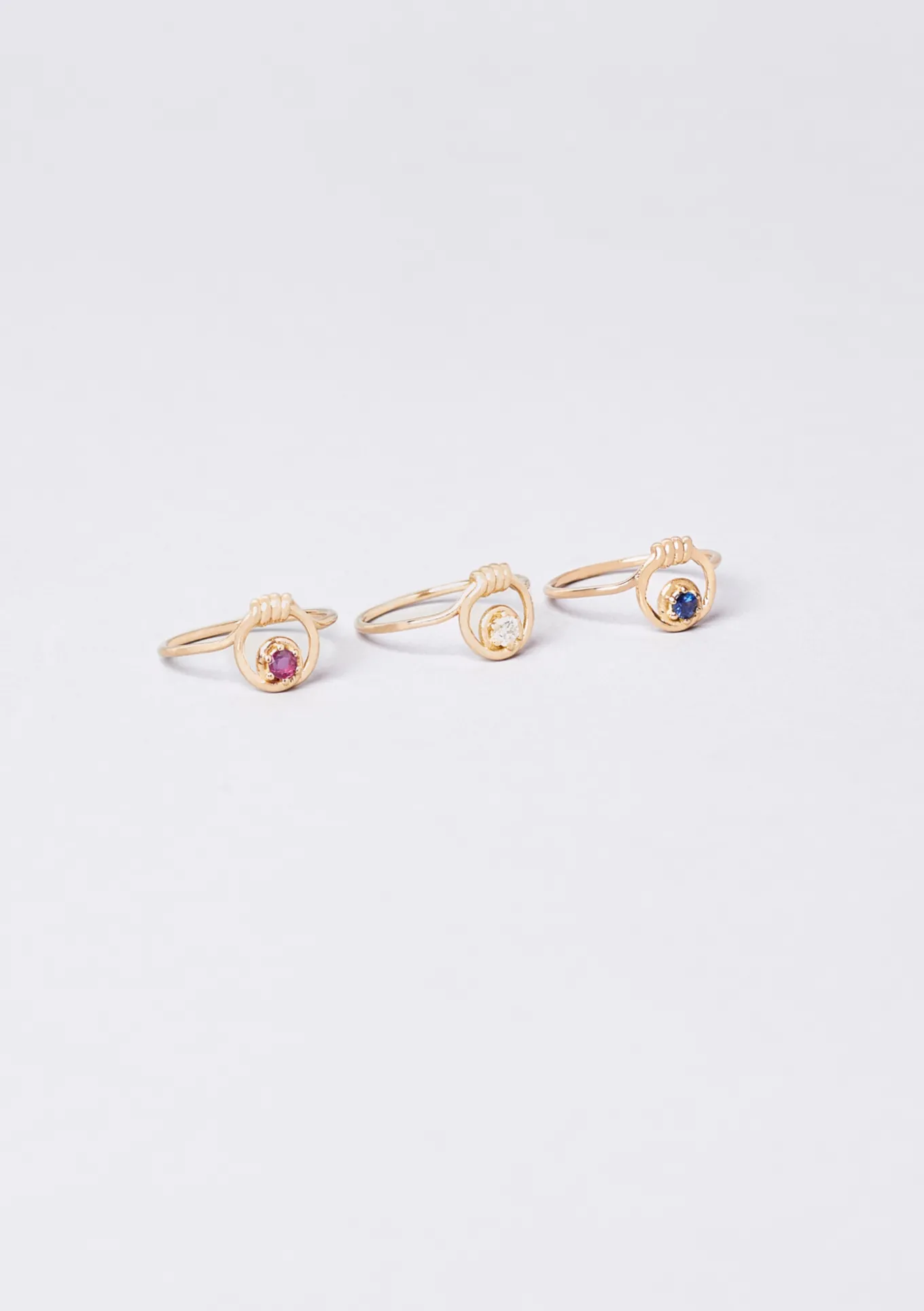 La bague Rym est en or 18 carats et est composée au choix d’un saphir, d’un rubis ou d’une émeraude. Rym peut-être façonnée en or jaune, rose ou blanc.