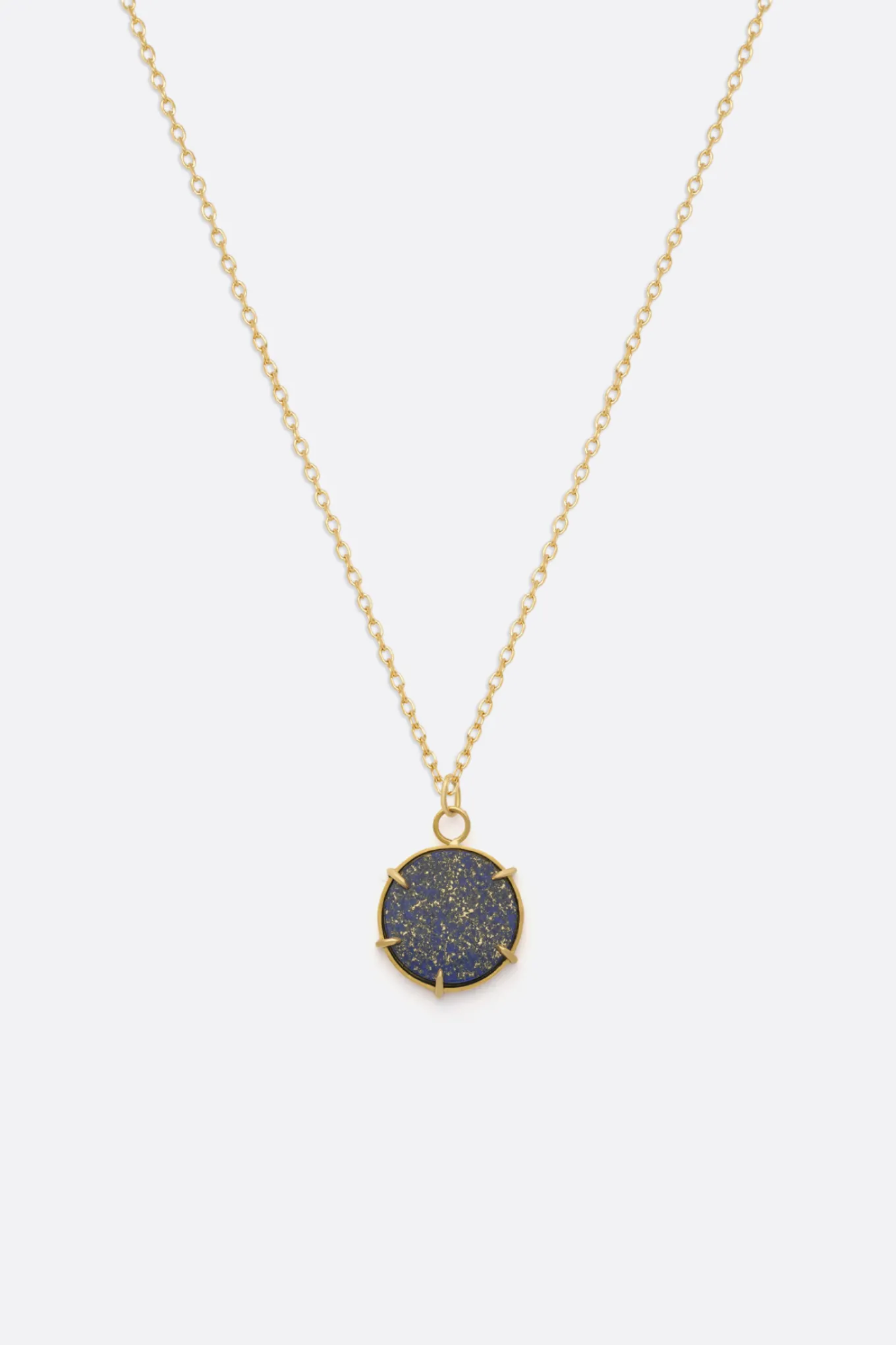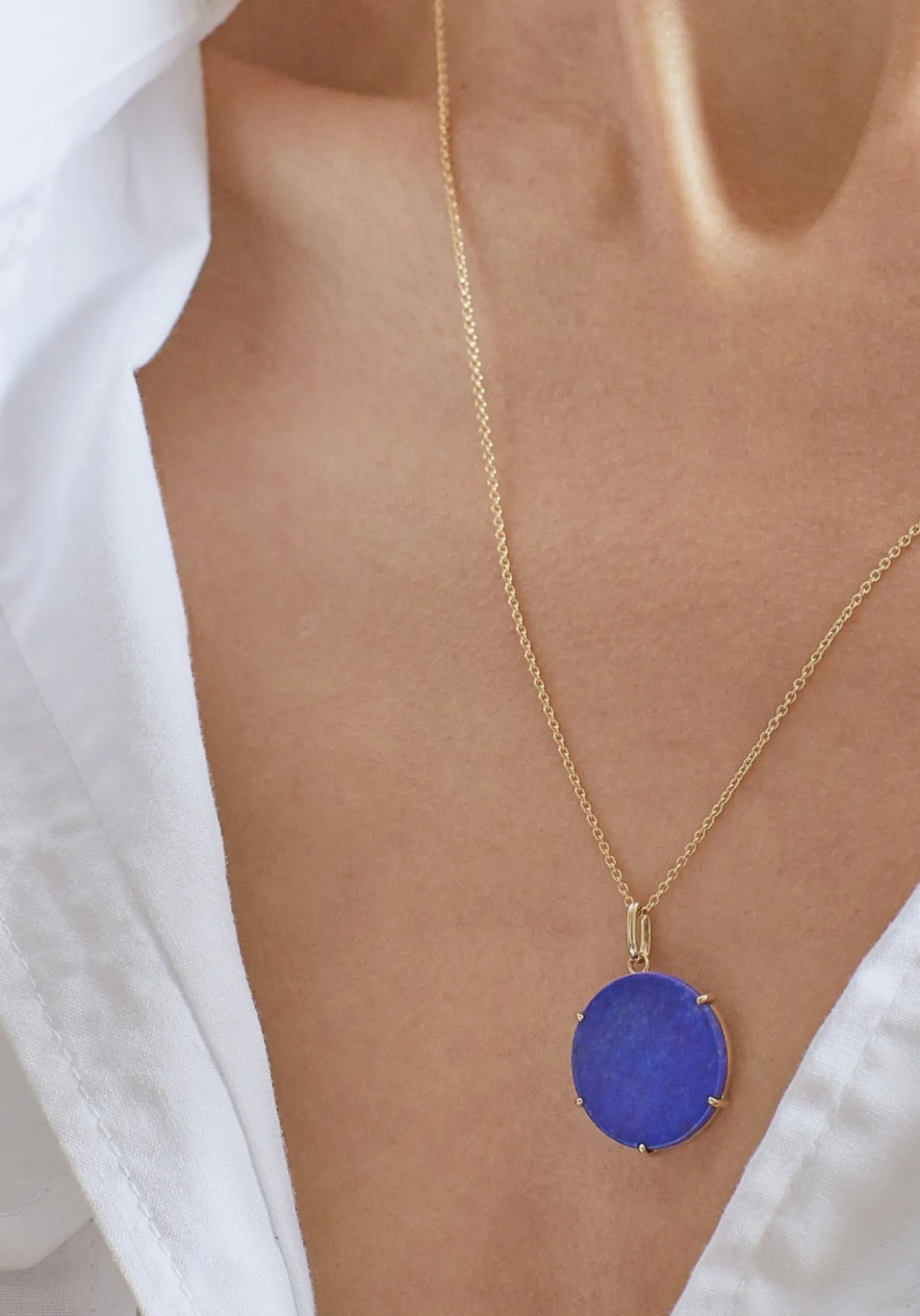 Le collier Walli se distingue par sa médaille ronde sertie d’un lapis lazuli. En or 18 cartas, le collier Walli se décline en or jaune, or rose ou or blanc.